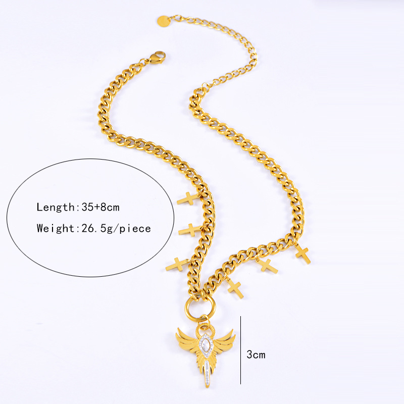 Stainless Steel Sweater Chain Necklace, with 1.9Inch extender chain, Angel, real gold plated, oval chain & for woman & with rhinestone Approx 20.47 Inch
