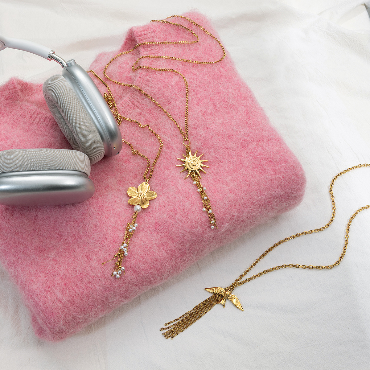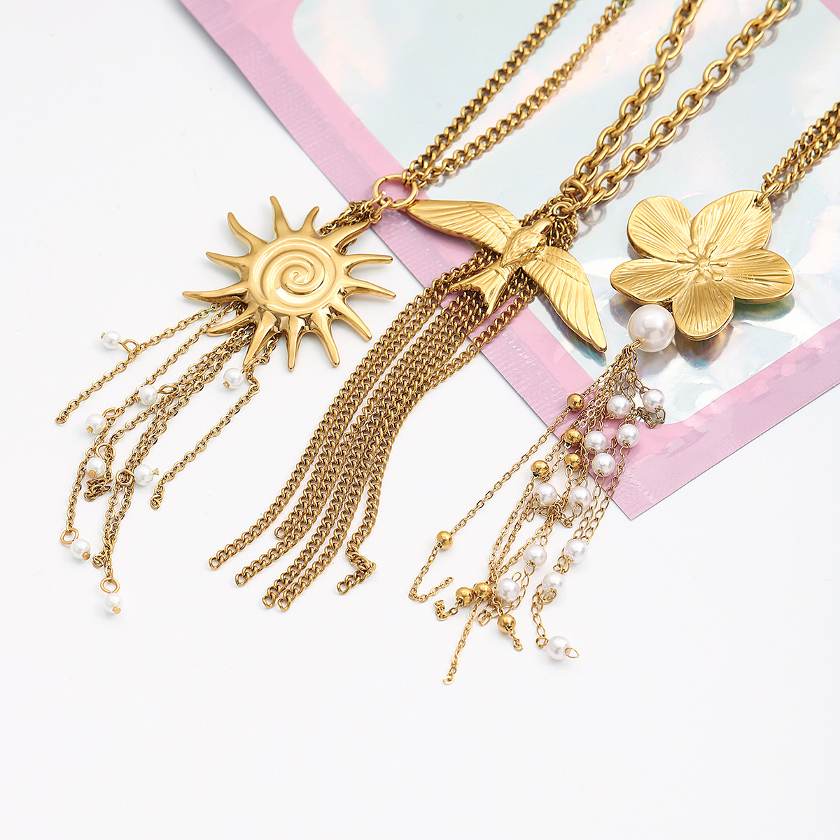 Stainless Steel Sweater Chain Necklace, Tassel, gold color plated, box chain & for woman & with rhinestone 6mm Approx 23.2 Inch