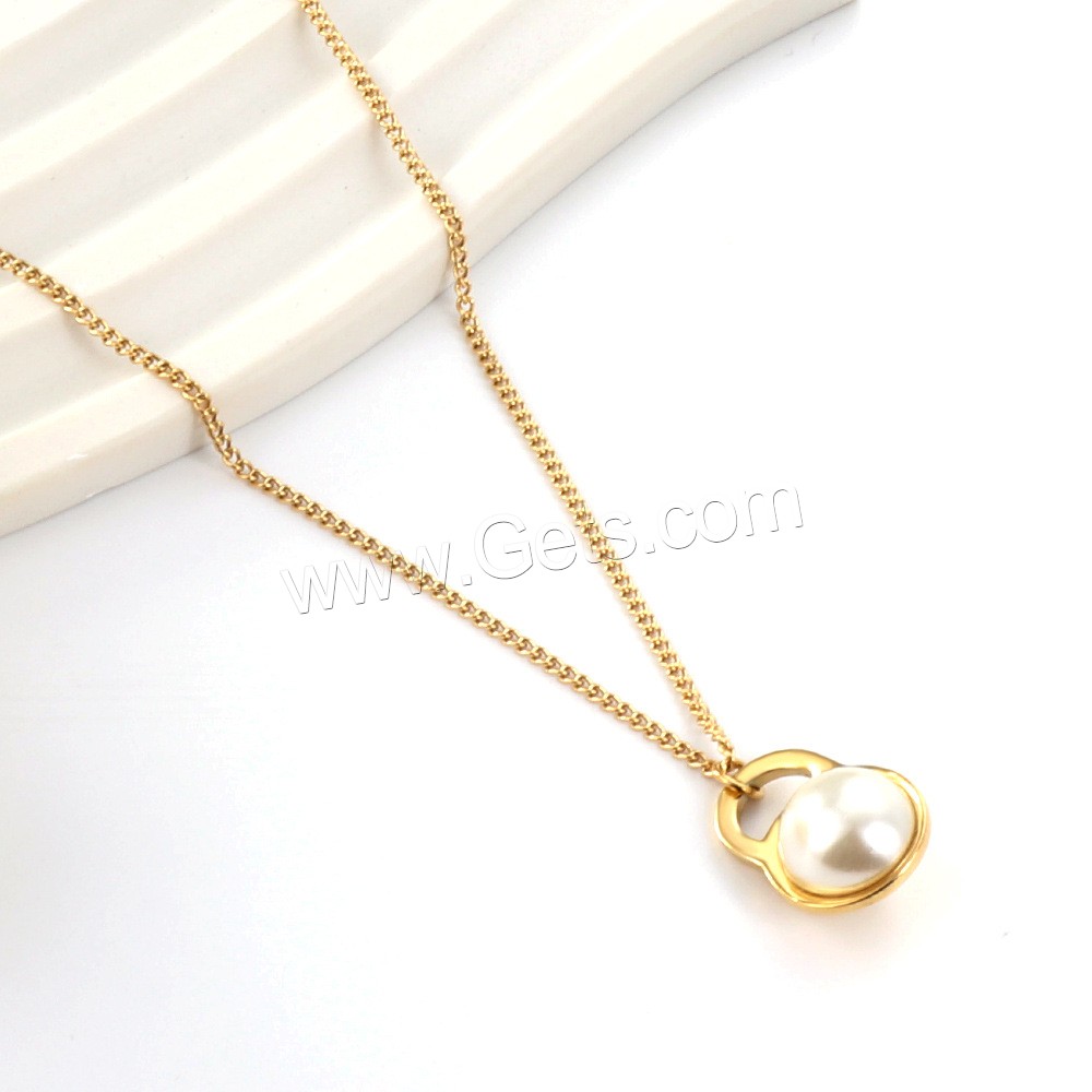 Stainless Steel Sweater Chain Necklace, 304 Stainless Steel, with Plastic Pearl, with 1.97inch extender chain, Vacuum Ion Plating, fashion jewelry & different styles for choice & for woman, golden, Length:Approx 15.75 Inch, Sold By Strand