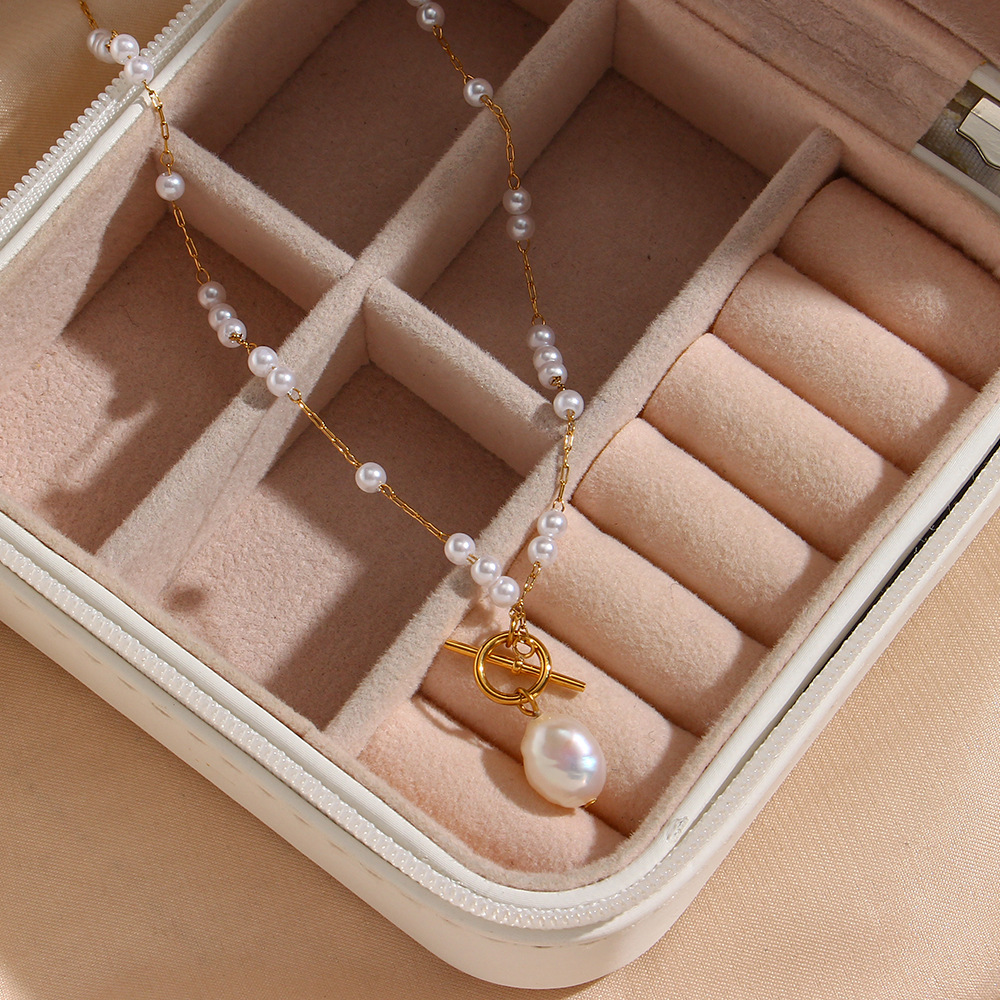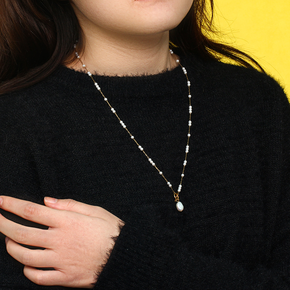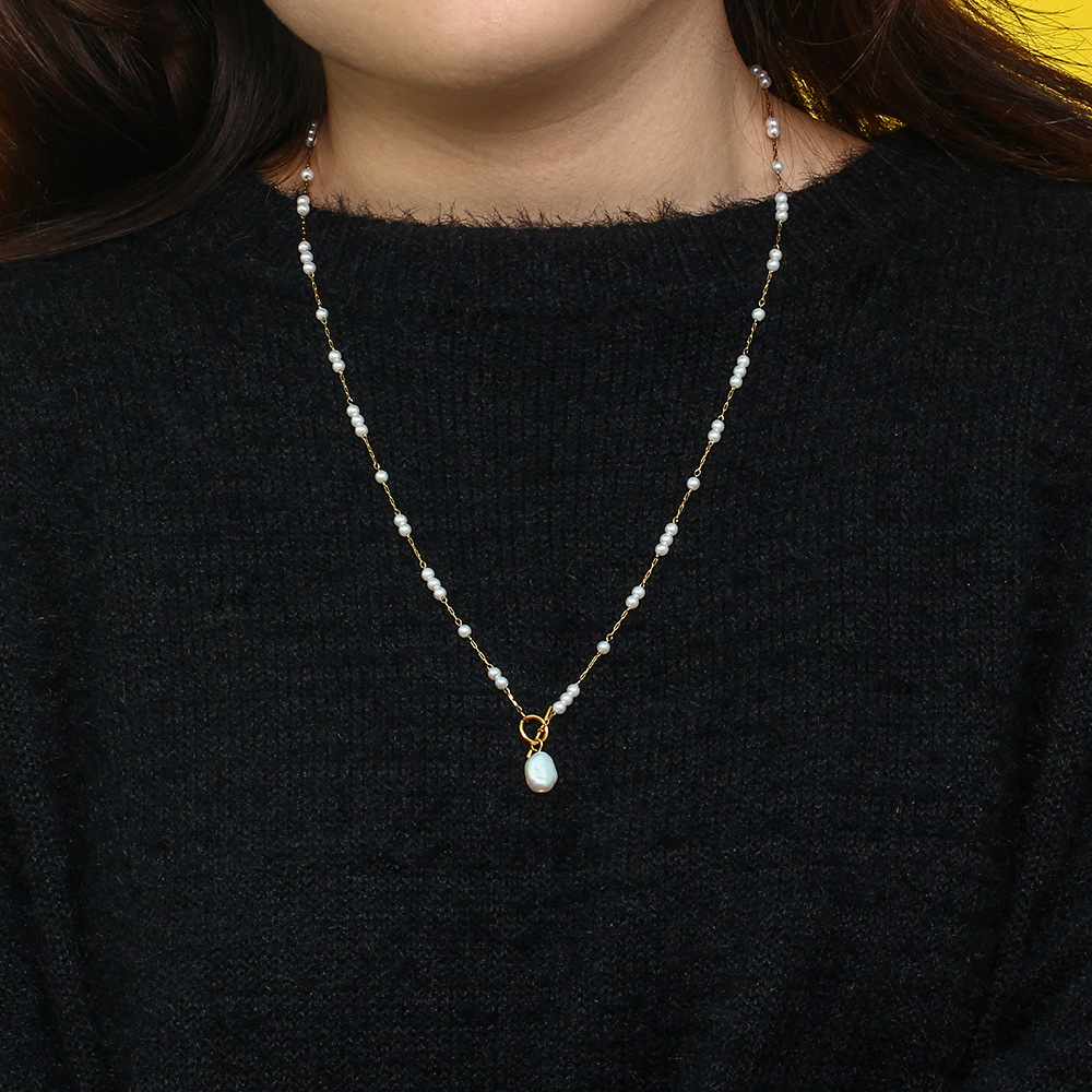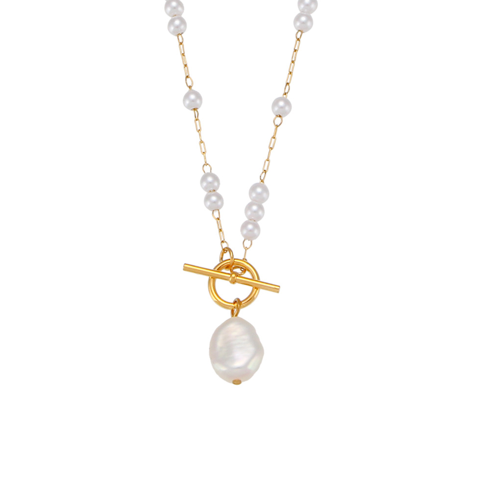 Stainless Steel Sweater Chain Necklace, 304 Stainless Steel, with Plastic Pearl, 18K gold plated, fashion jewelry & for woman, Length:Approx 55 cm, Sold By PC