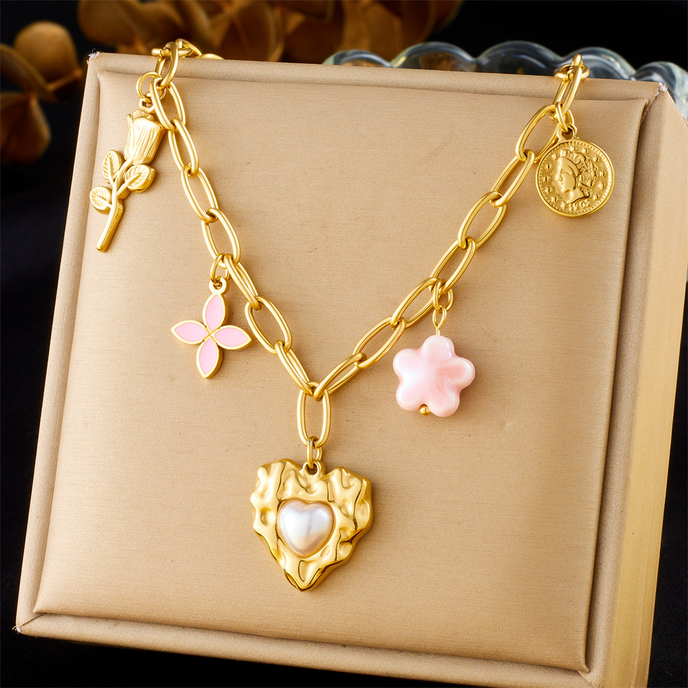 Stainless Steel Sweater Chain Necklace, 304 Stainless Steel, with Plastic & Plastic Pearl, plated, fashion jewelry & different styles for choice & for woman, golden, Sold By PC