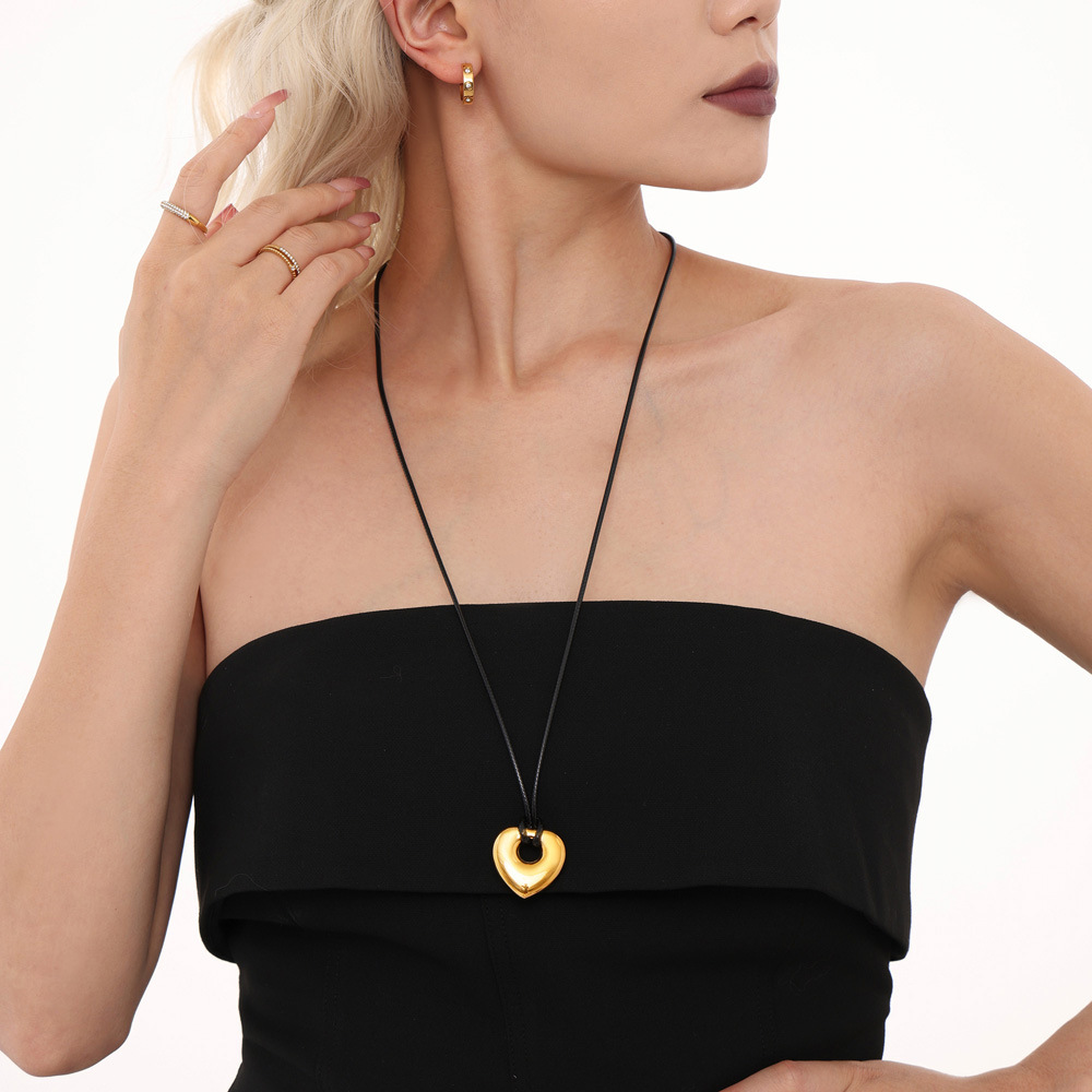 Stainless Steel Sweater Chain Necklace, 304 Stainless Steel, with leather cord, gold color plated, fashion jewelry, more colors for choice, Sold By PC