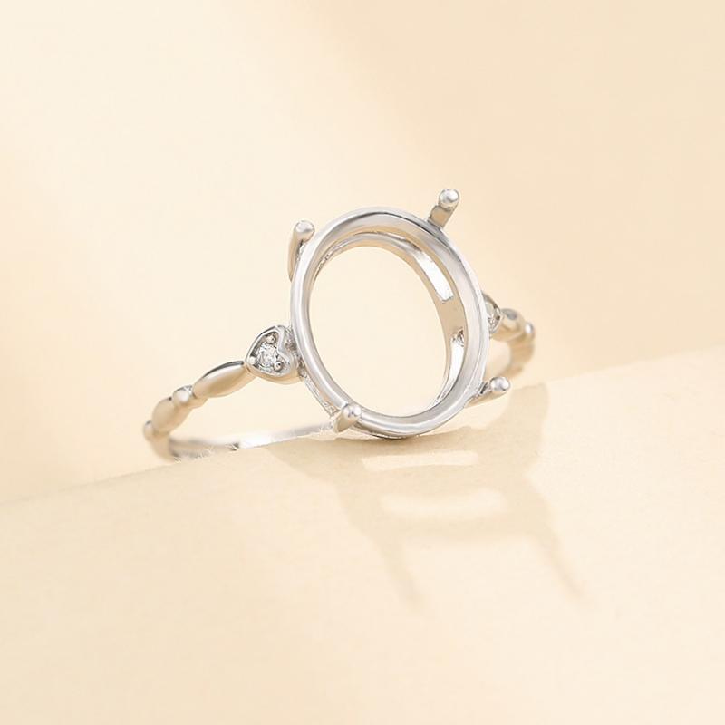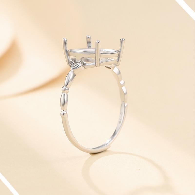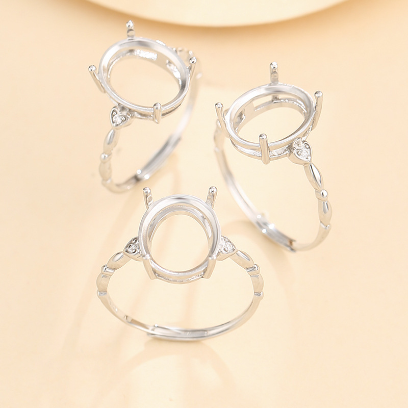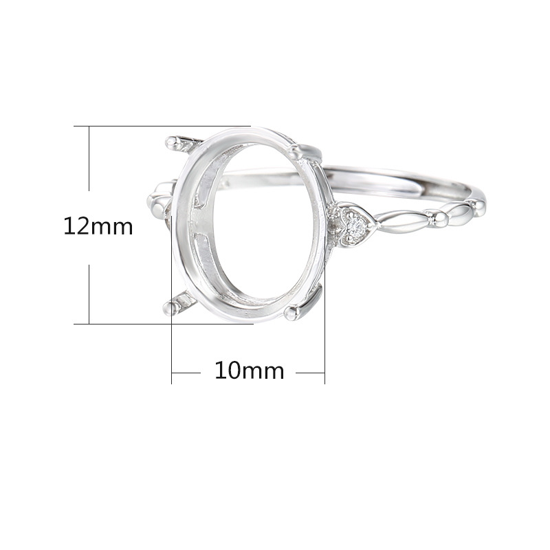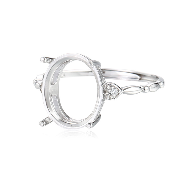 925 Sterling Silver Bezel Ring Base, Flat Oval, adjustable & micro pave cubic zirconia, 18mm, Inner Approx US Ring
