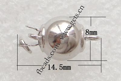 Sterling Silver Box Clasp, 925 Sterling Silver, Round, plated, single-strand 8mm