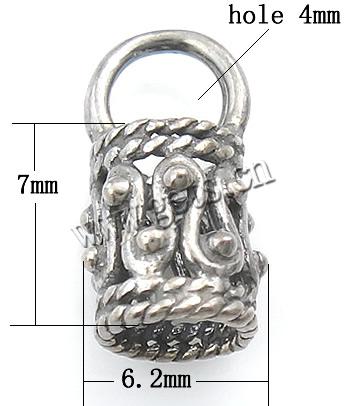 Sterling Silver End Caps, 925 Sterling Silver, Tube, plated, hollow, more colors for choice, 7x6.2mm, 4mm, Hole:Approx 4mm, Sold By PC