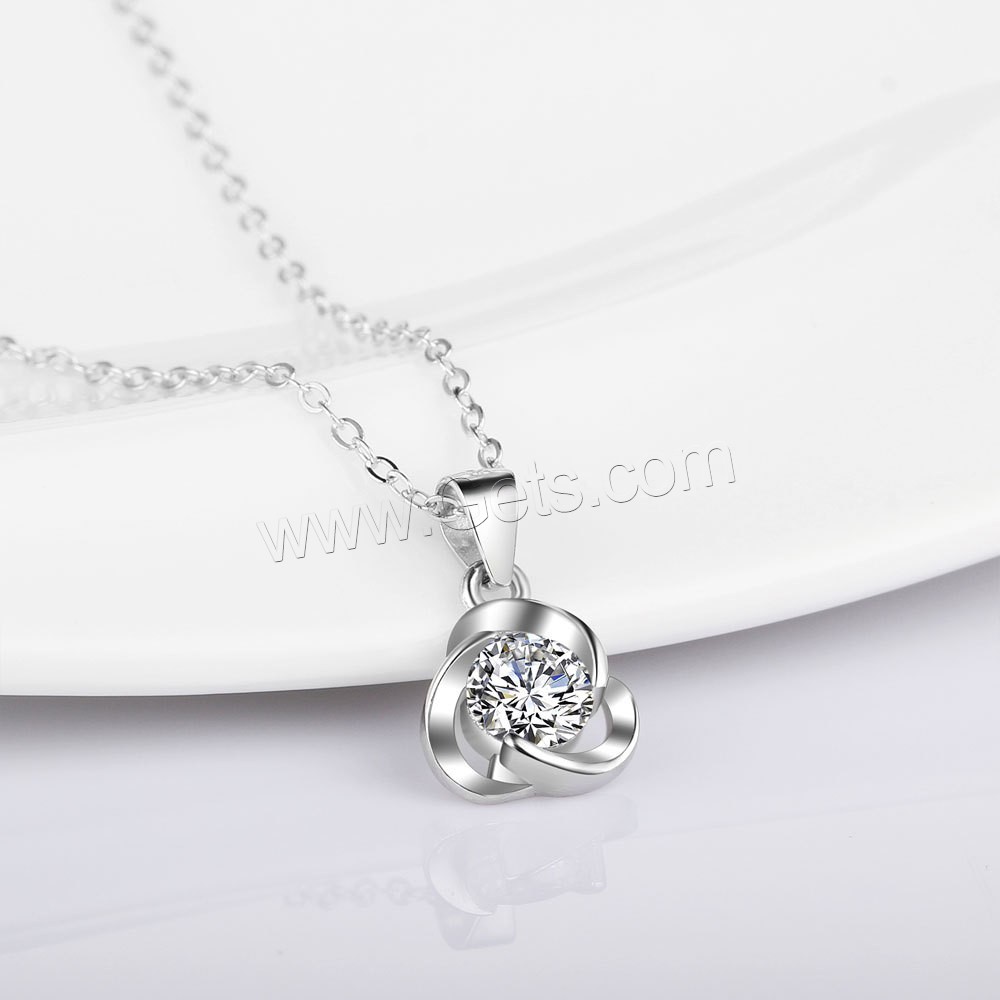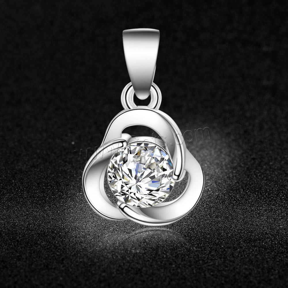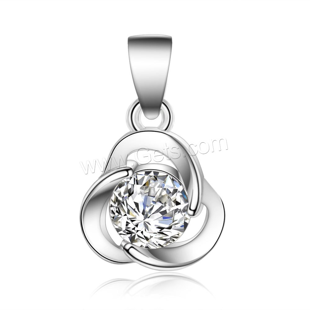 Sterling Silver Flower Pendants, Brass, silver color plated, with cubic zirconia, 9x15mm, Sold By PC