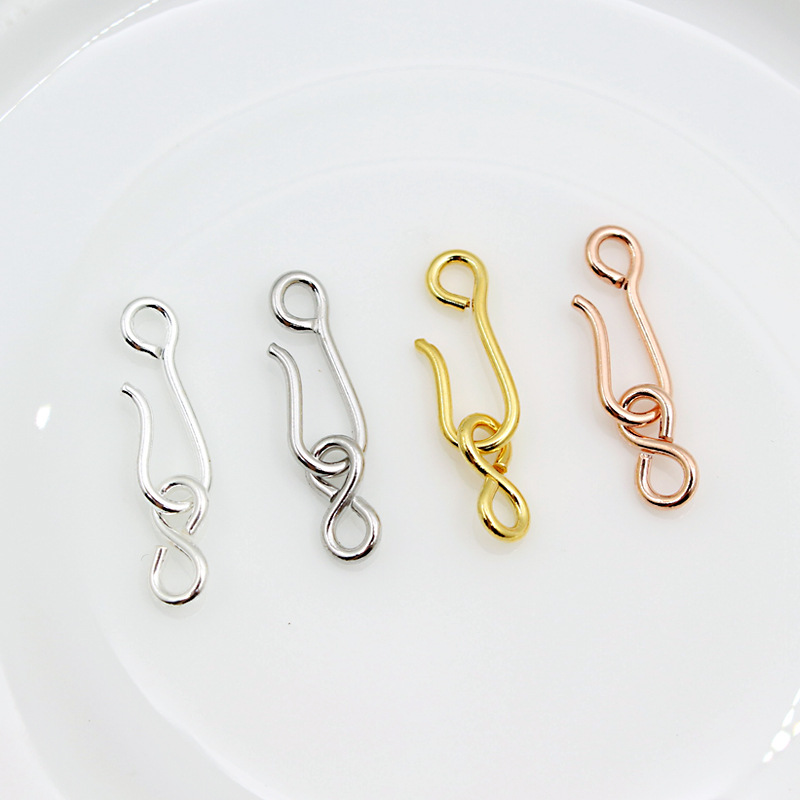 Sterling Silver Hook and Eye Clasp, 925 Sterling Silver, plated, single-strand