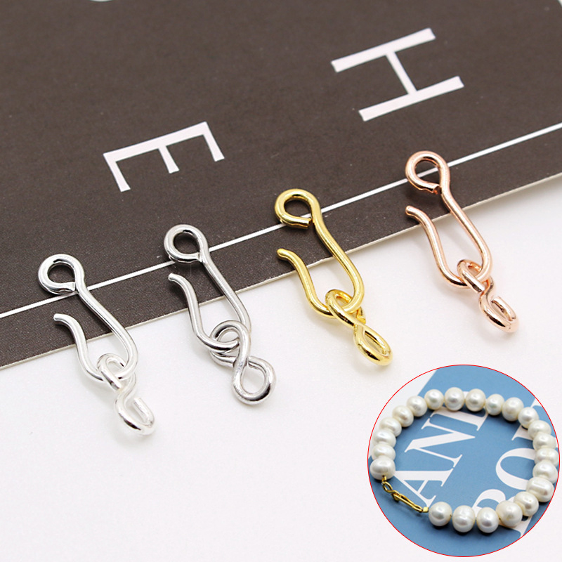 Sterling Silver Hook and Eye Clasp, 925 Sterling Silver, single-strand