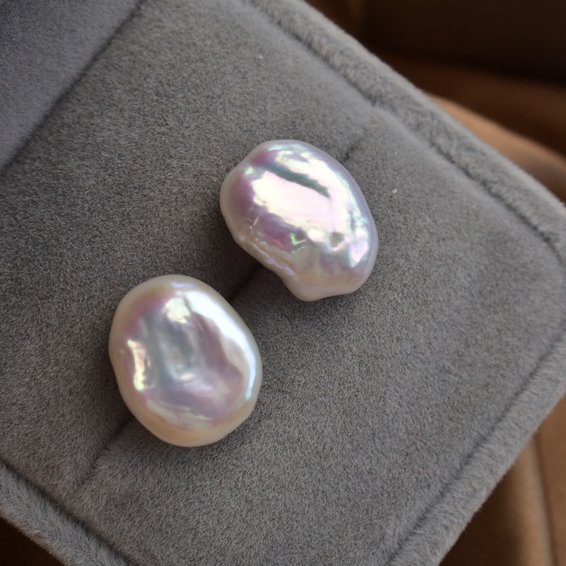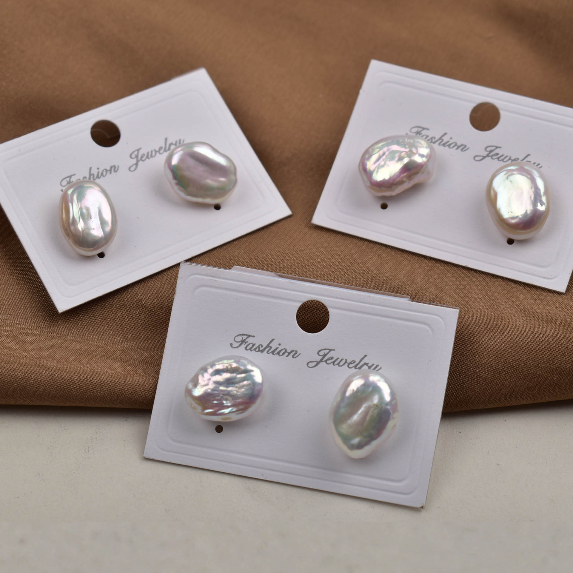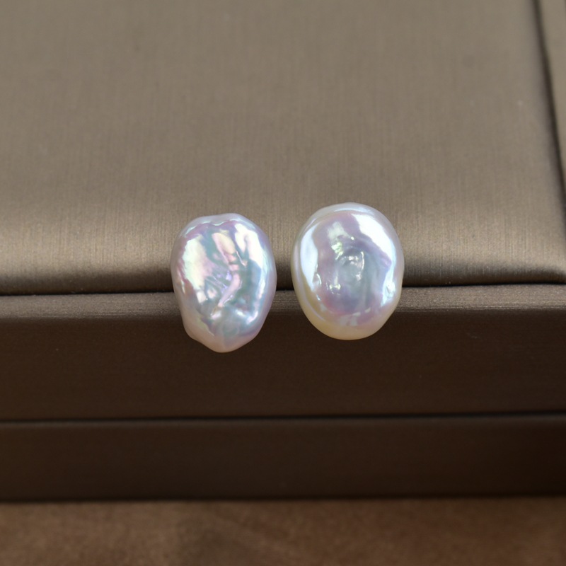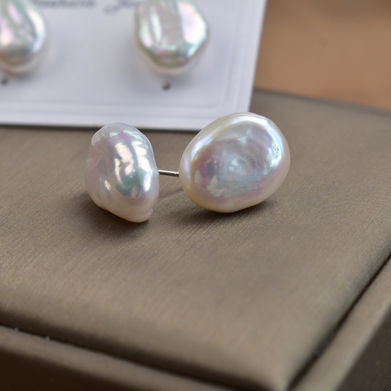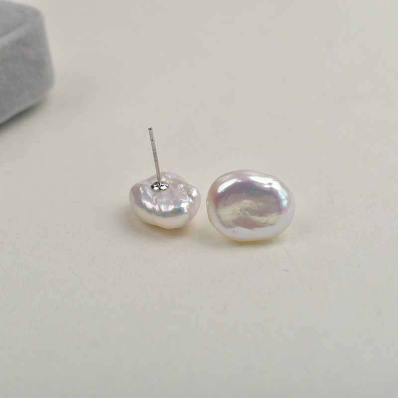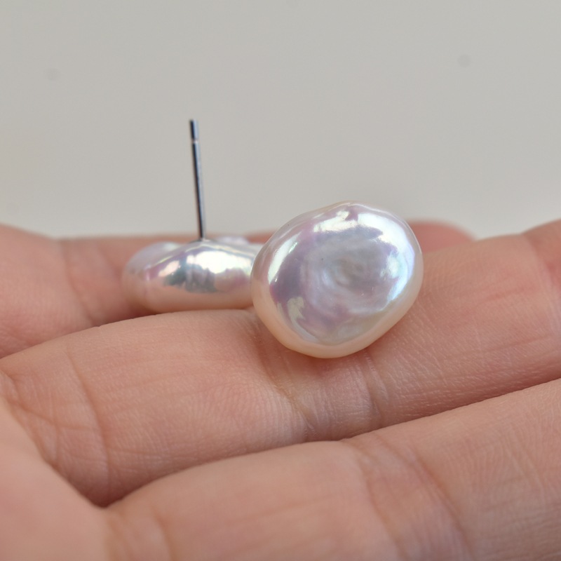 Freshwater Pearl Stud Earring, sterling silver post pin, Coin 14mm