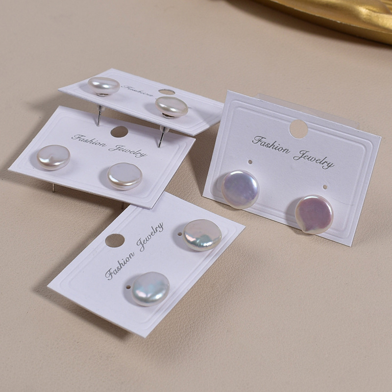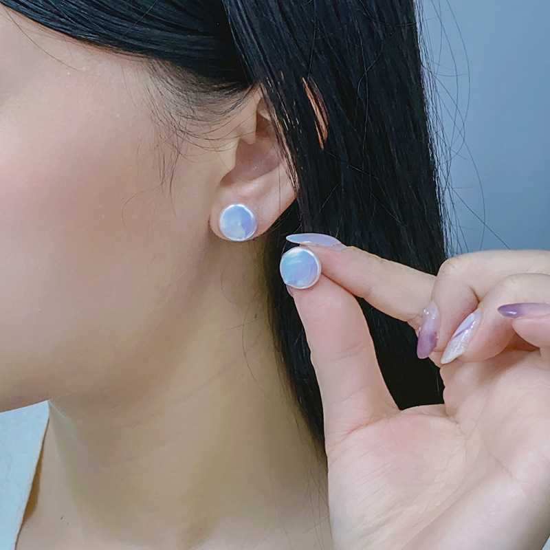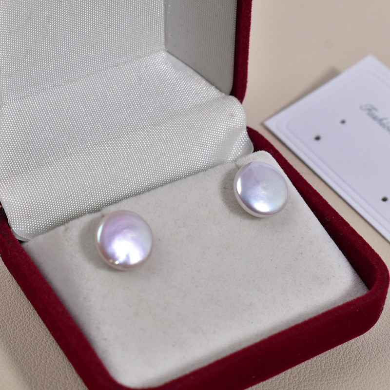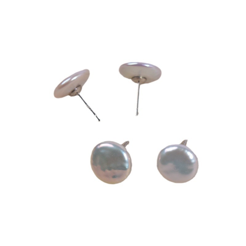 Freshwater Pearl Stud Earring, sterling silver post pin, Coin 14mm