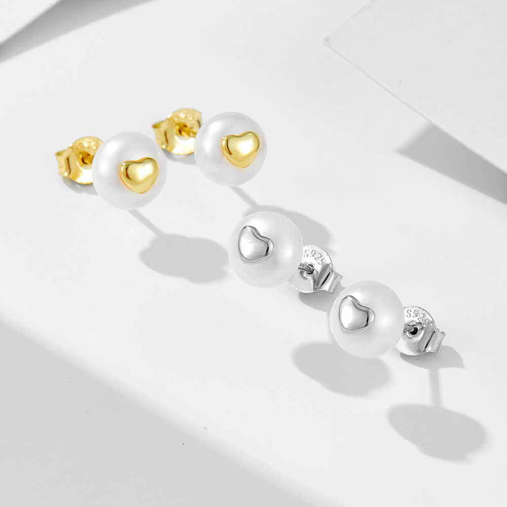 Sterling Silver Natural Pearl Stud Earring, 925 Sterling Silver, with Freshwater Pearl, plated, for woman, more colors for choice, 8mm, Sold By Pair