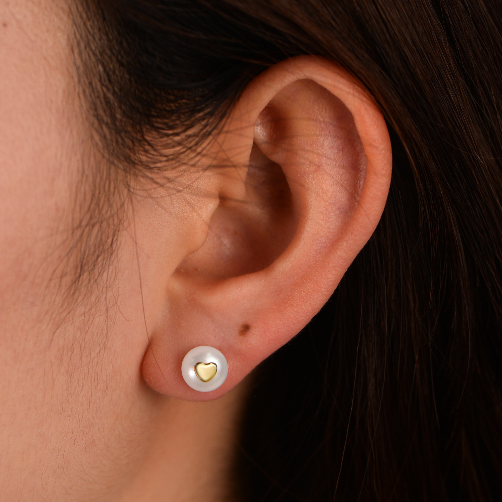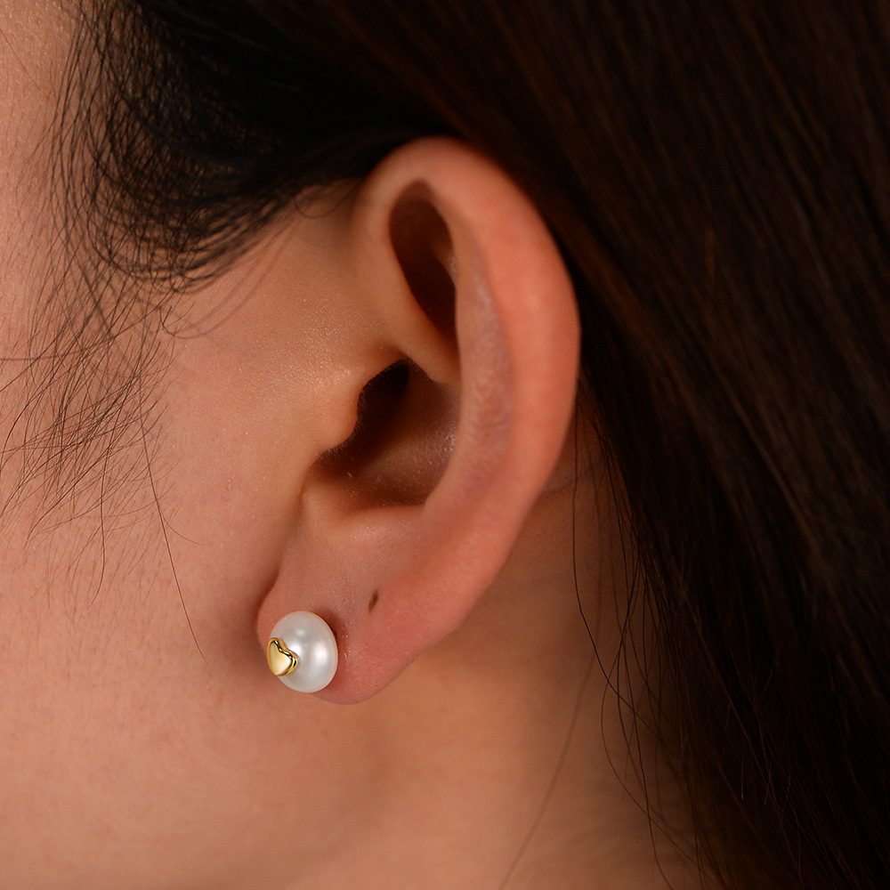 Freshwater Pearl Stud Earring, sterling silver post pin, Coin 14mm