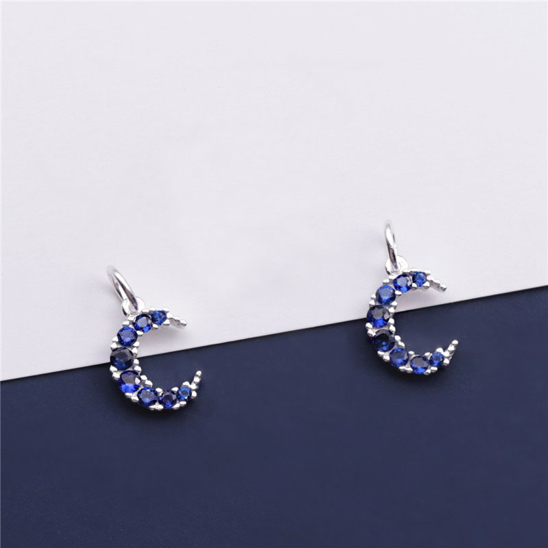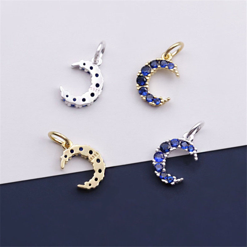 Sterling Silver Rhinestone Pendants, 925 Sterling Silver, Moon, plated, DIY & with rhinestone, more colors for choice, 8.5x12mm, Hole:Approx 3.5mm, Sold By PC