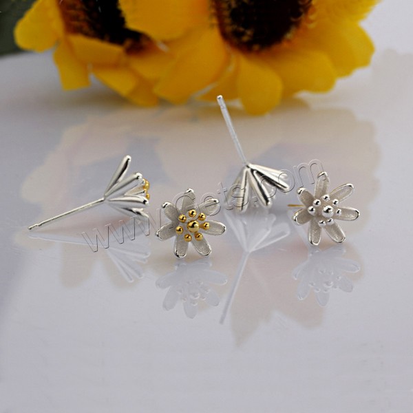 Sterling Silver Stud Earring, 925 Sterling Silver, Flower, plated, more colors for choice, 9x9mm, Sold By Pair
