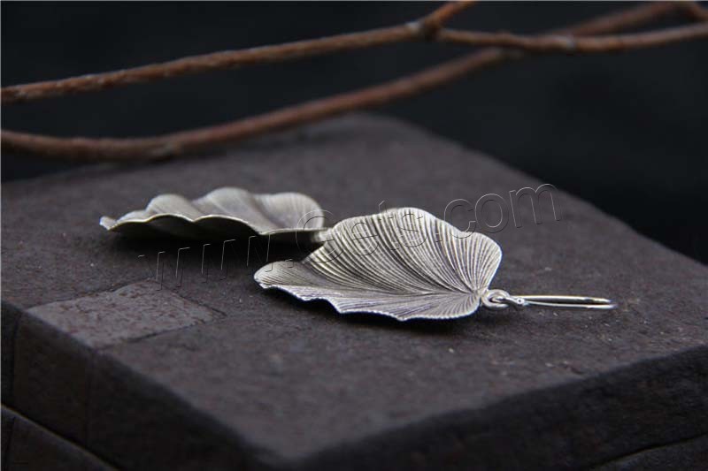 Thailand Sterling Silver Drop Earring, Leaf, for woman, 27x37mm, Sold By Pair