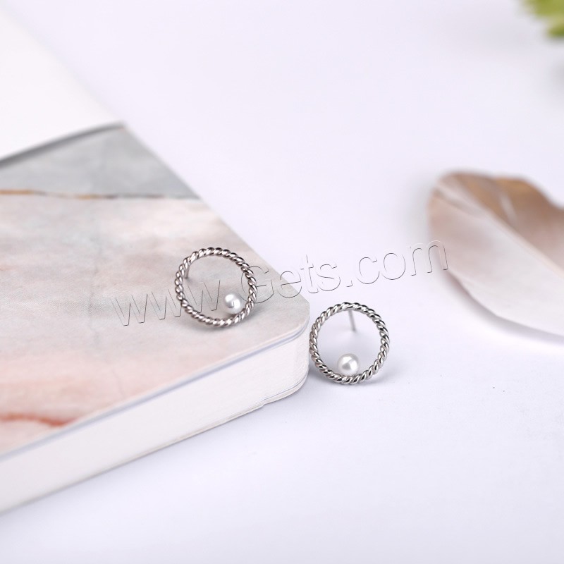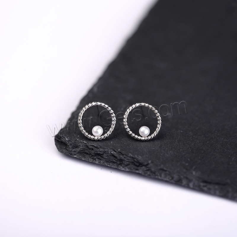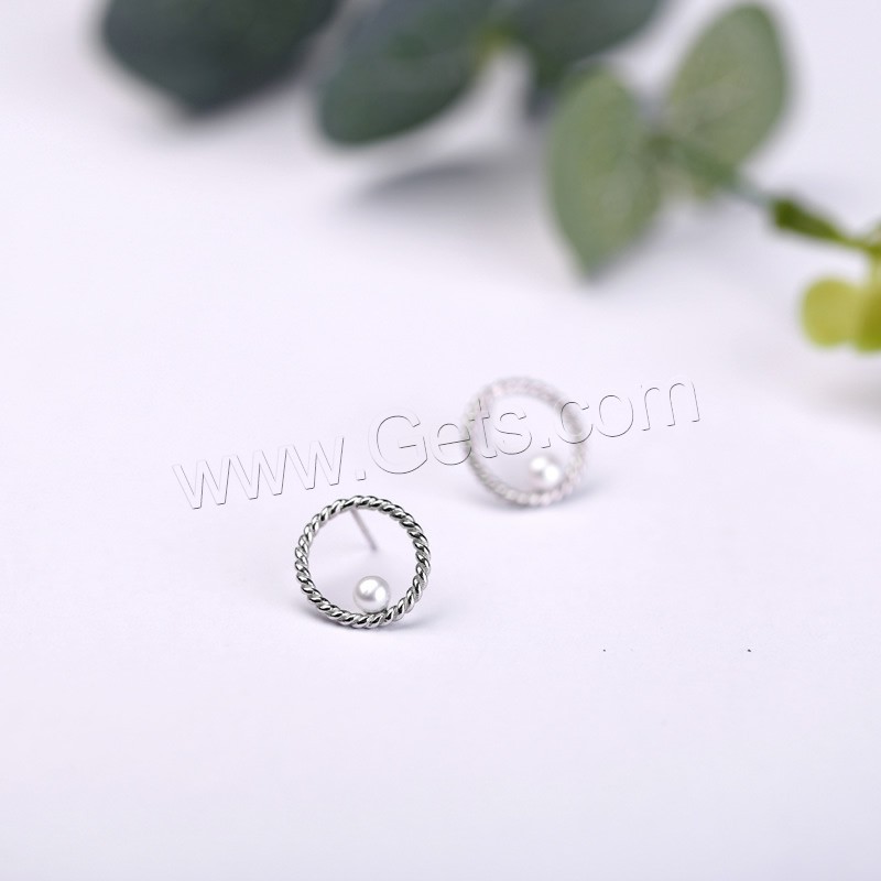 Thailand Sterling Silver Stud Earring, with rubber earnut, Donut, for woman & with pearl, 4x4mm, 15x15mm, Sold By Pair