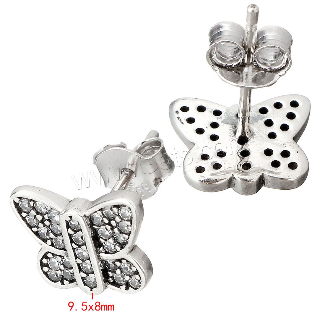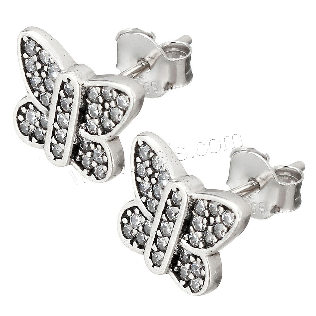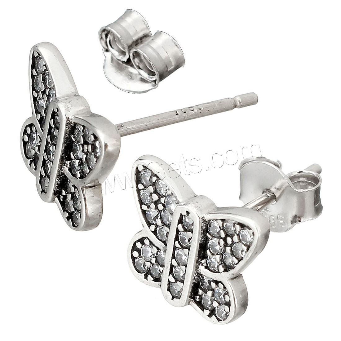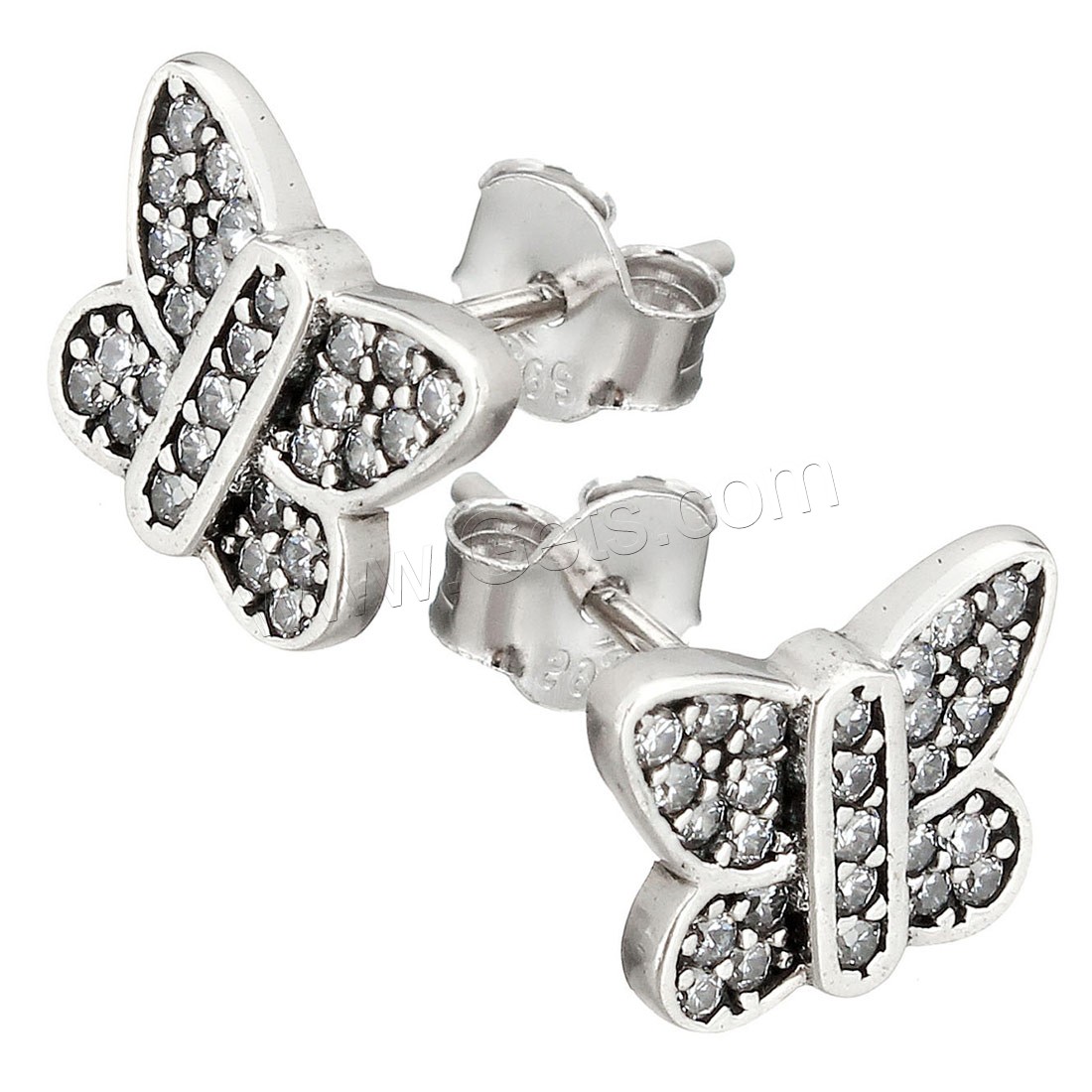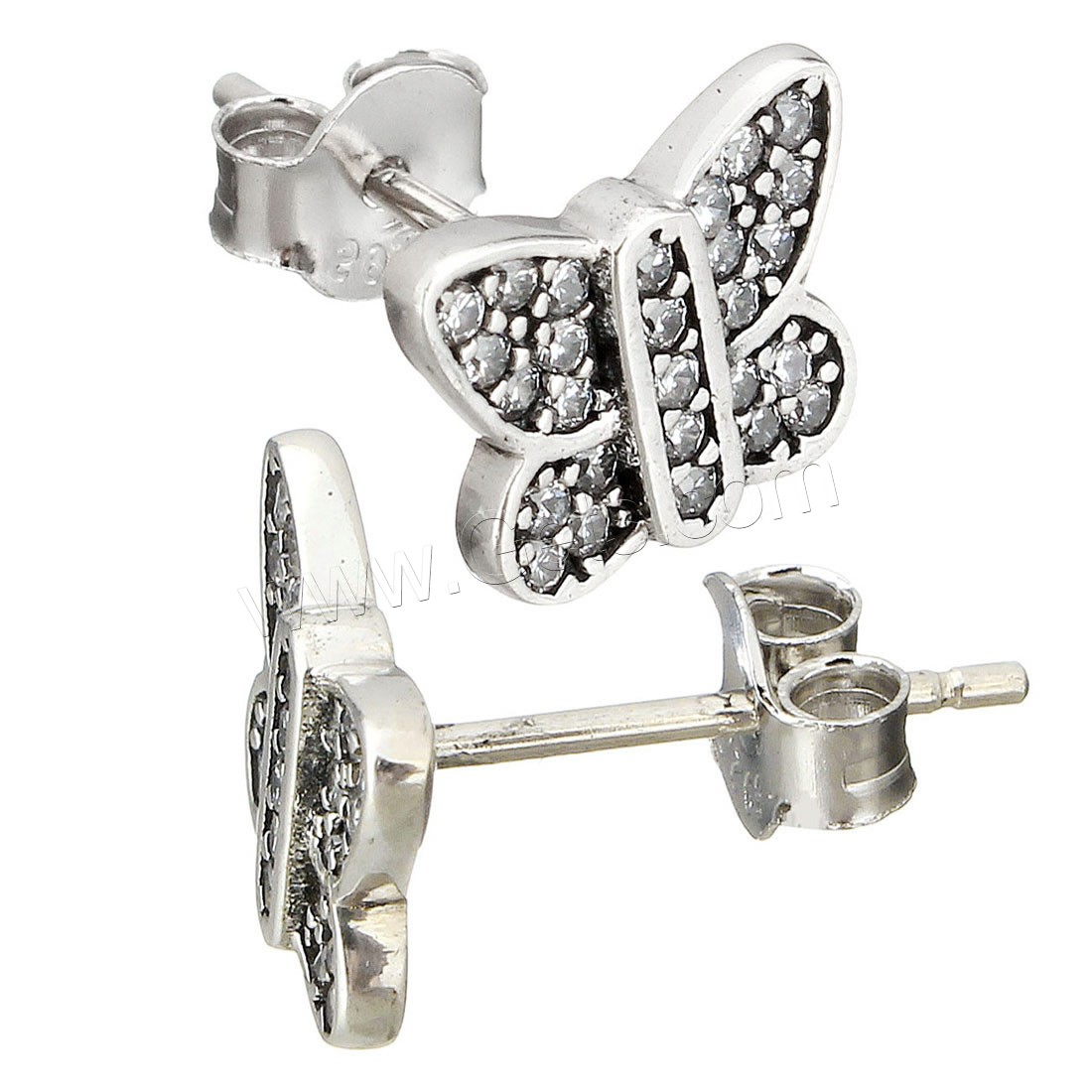 Thailand Sterling Silver Stud Earring, Butterfly, plated, micro pave cubic zirconia & for woman, more colors for choice, 9.5x8mm, Sold By Pair