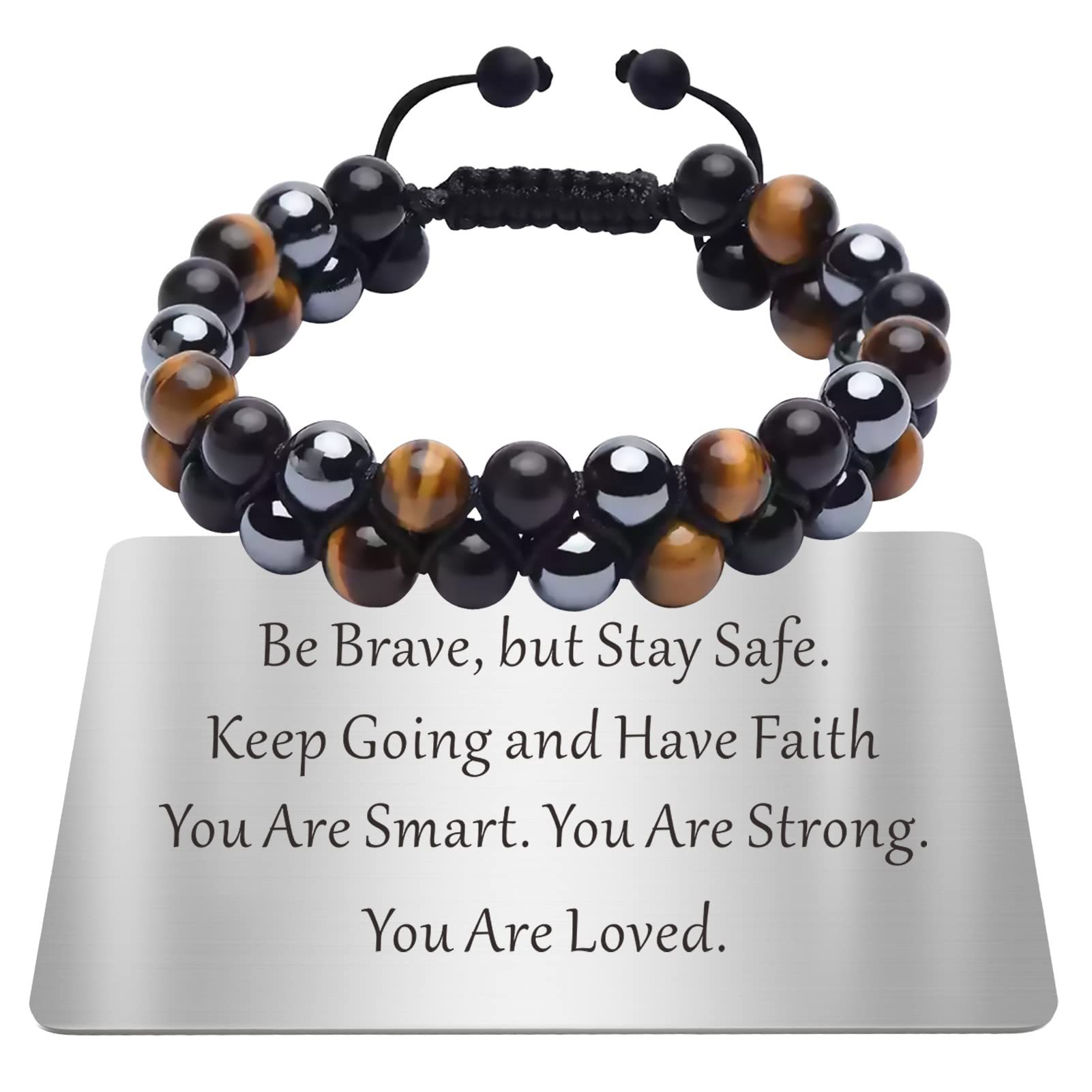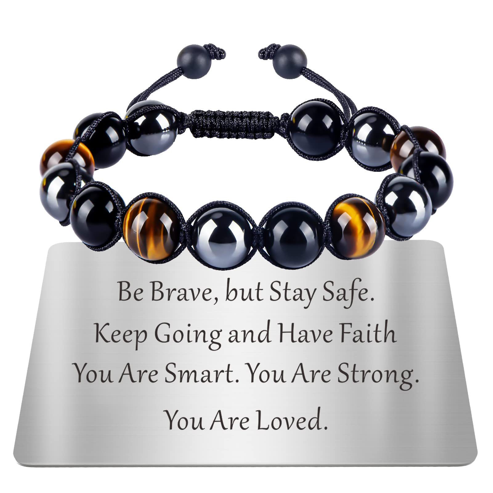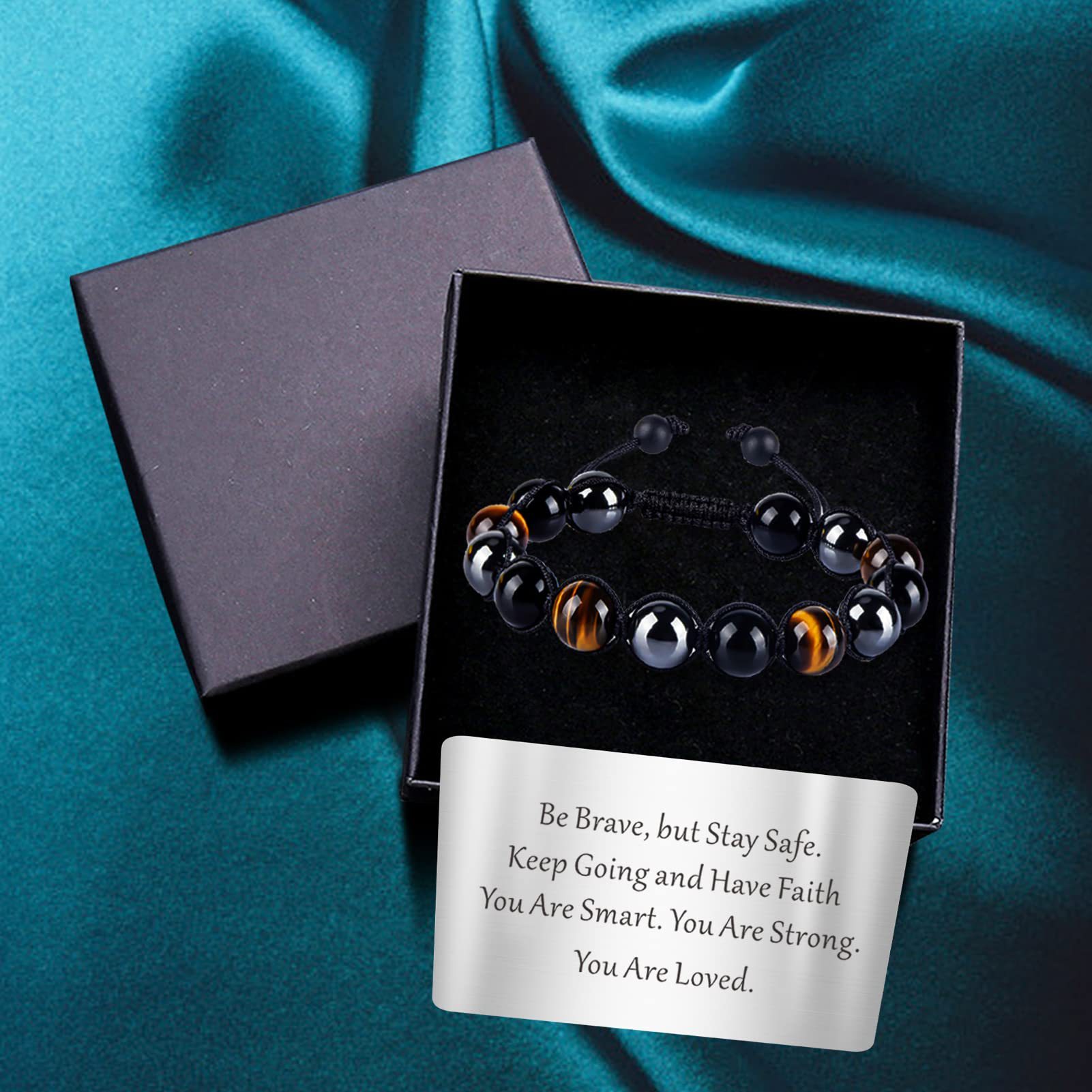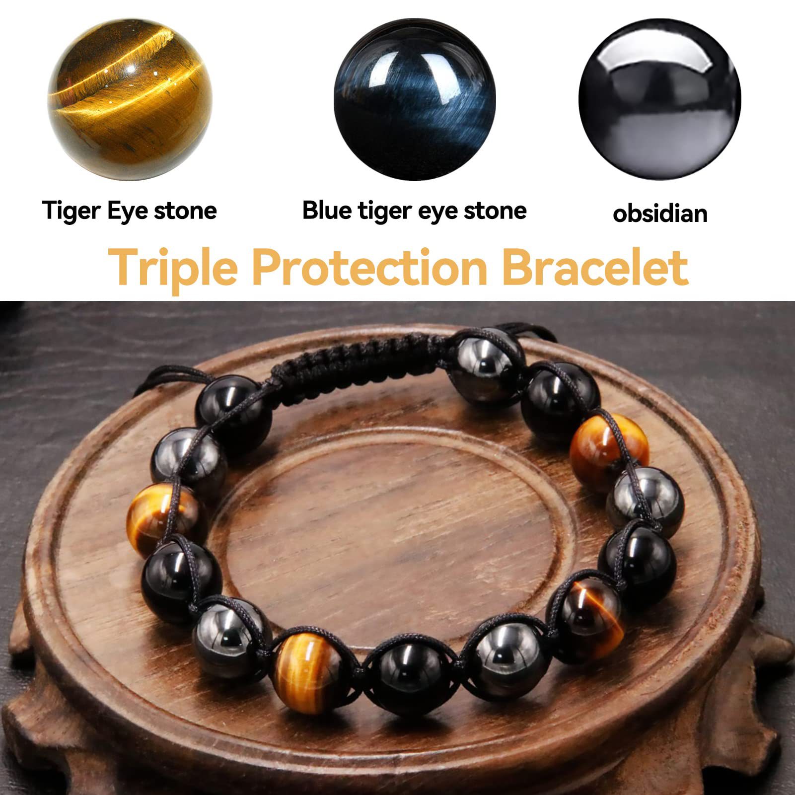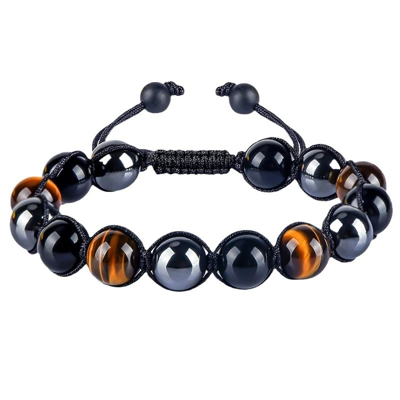 Tiger Eye Bracelet, with Obsidian & Polyester Cord & 304 Stainless Steel, Round, handmade, different styles for choice & for man, beads length 10mm, Length:Approx 7-10 Inch, Sold By PC