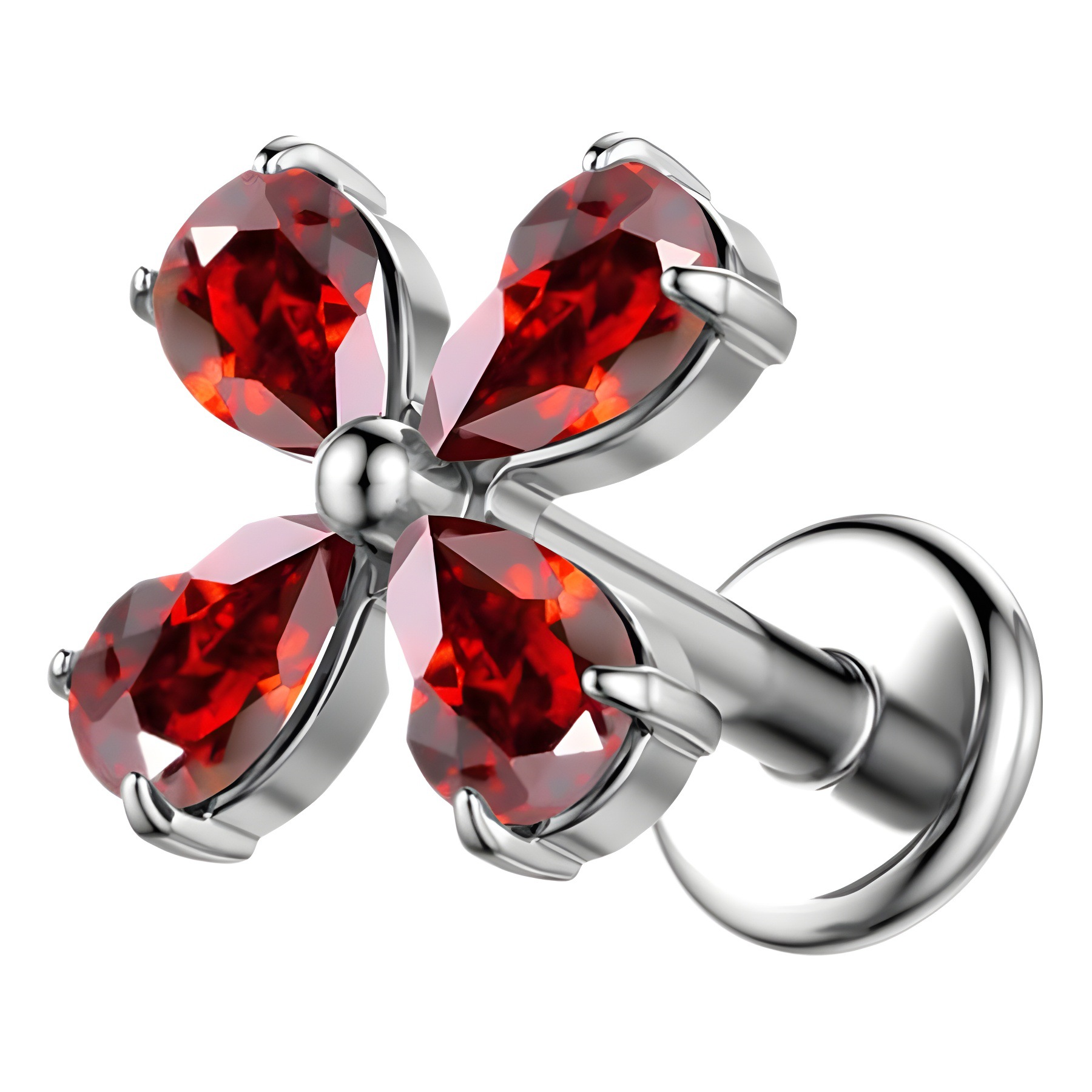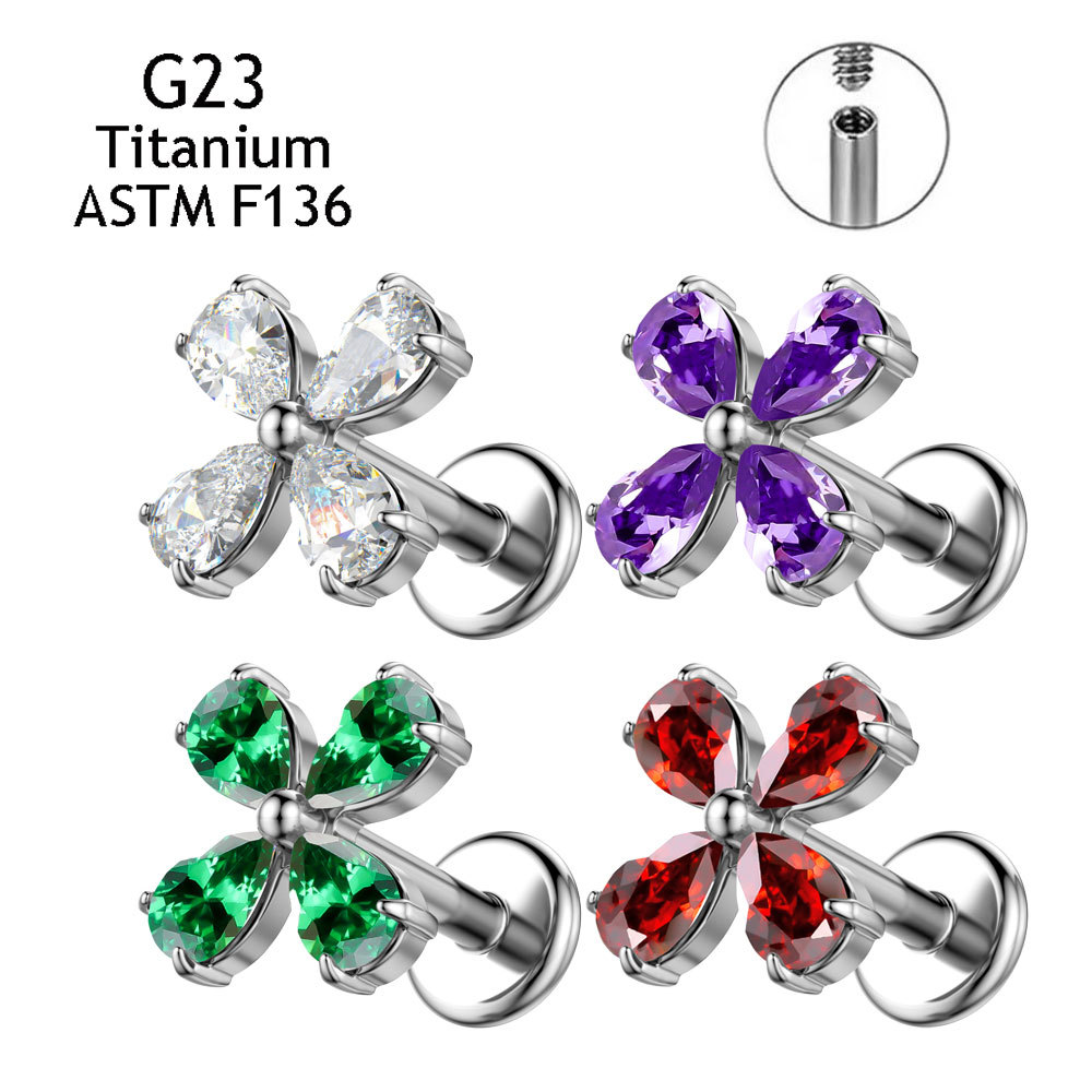 Titanium Alloy Piercing Earring, Four Leaf Clover, Unisex & different size for choice & micro pave cubic zirconia, more colors for choice, Sold By PC