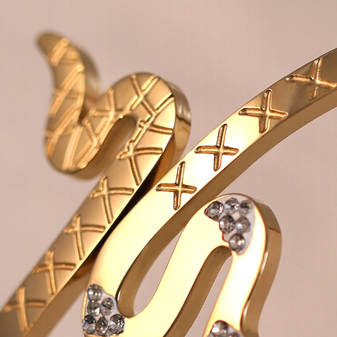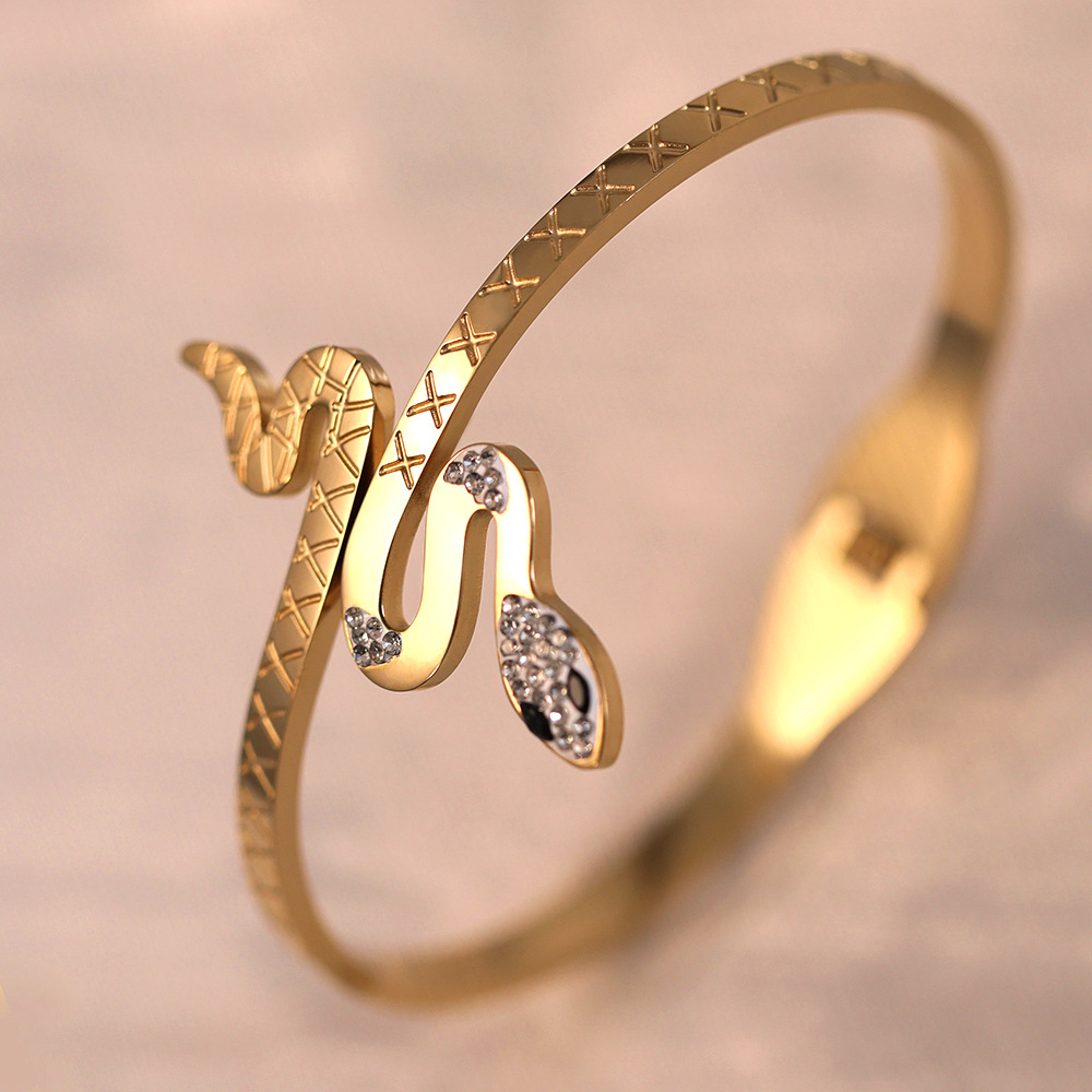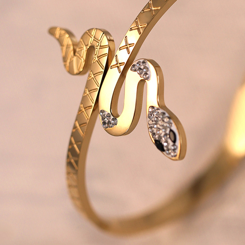Titanium Steel Bangle, Snake, gold color plated, for woman & with rhinestone, Inner Diameter:Approx 60mm, Sold By PC
