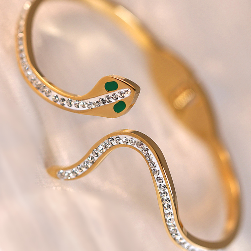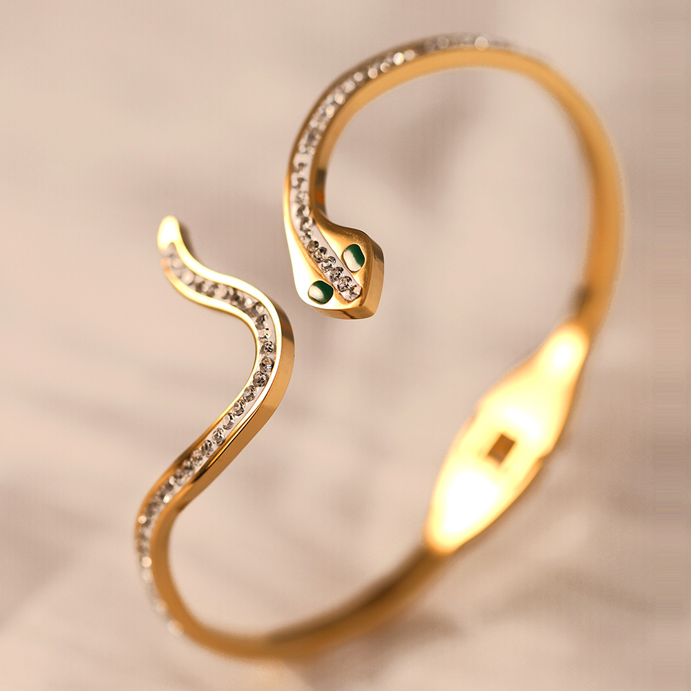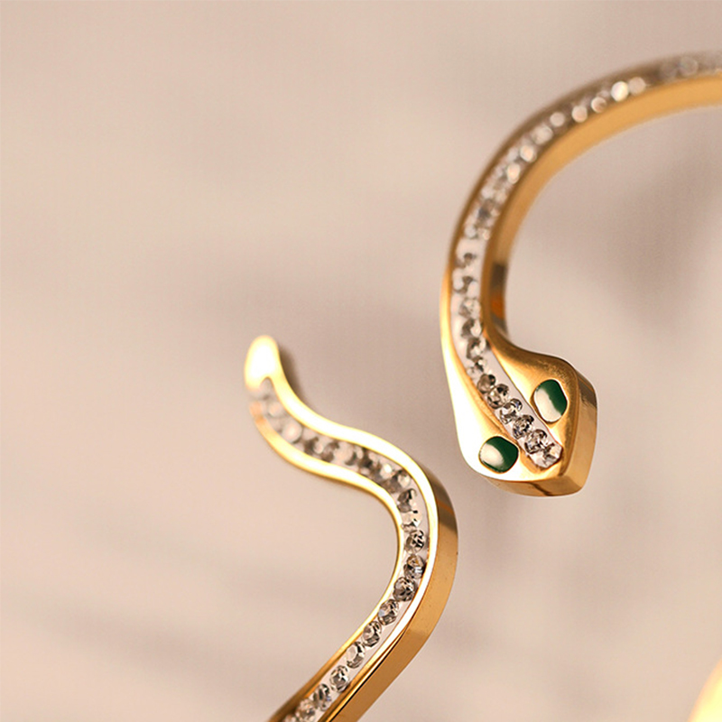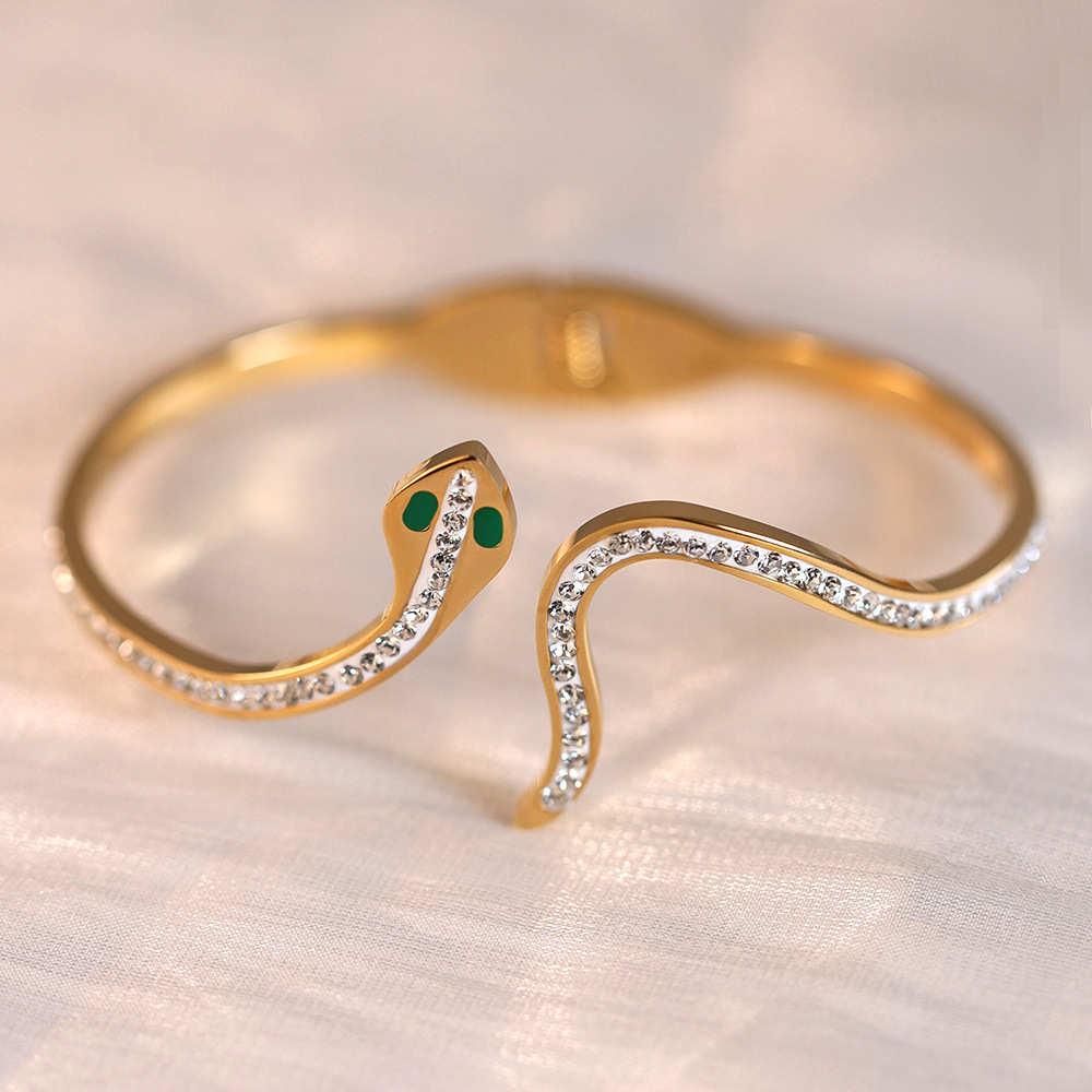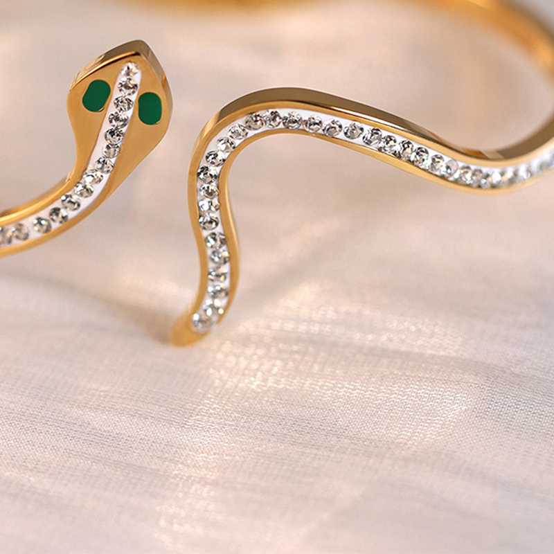 Titanium Steel Bangle, Snake, gold color plated, for woman & with rhinestone, Inner Diameter:Approx 60mm, Sold By PC