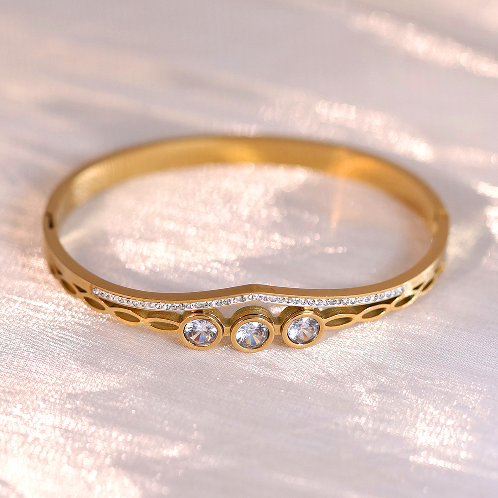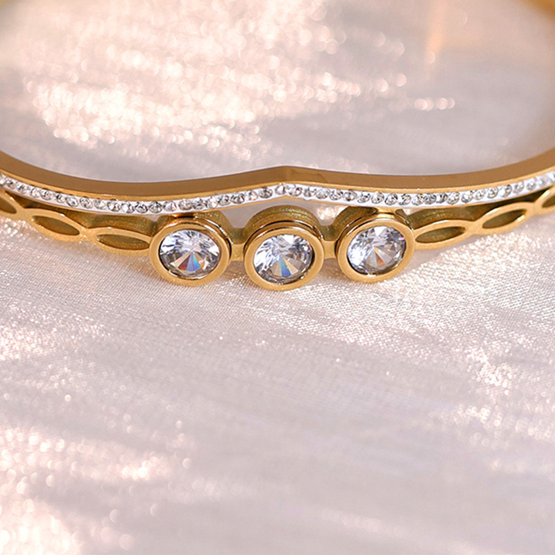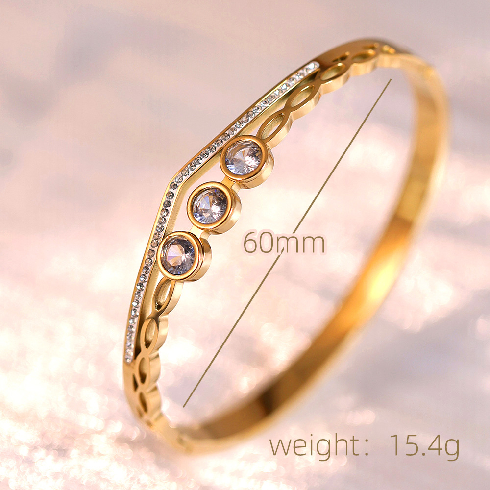 Titanium Steel Bangle, gold color plated, for woman & with rhinestone, Inner Diameter:Approx 60mm, Sold By PC