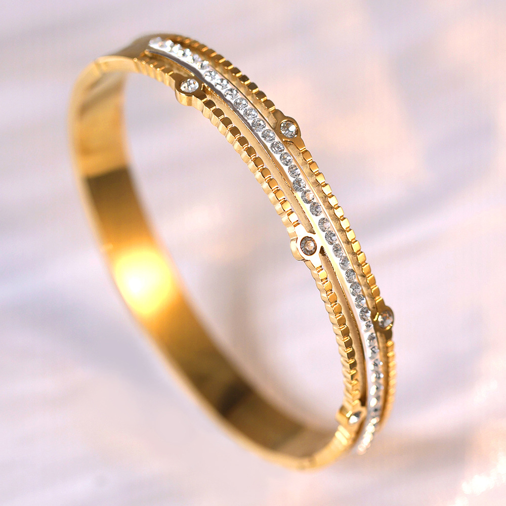Titanium Steel Bangle, gold color plated, for woman & with rhinestone, Inner Diameter:Approx 60mm, Sold By PC