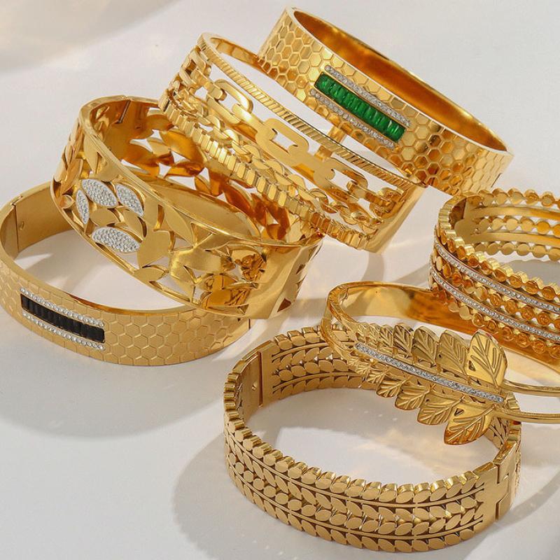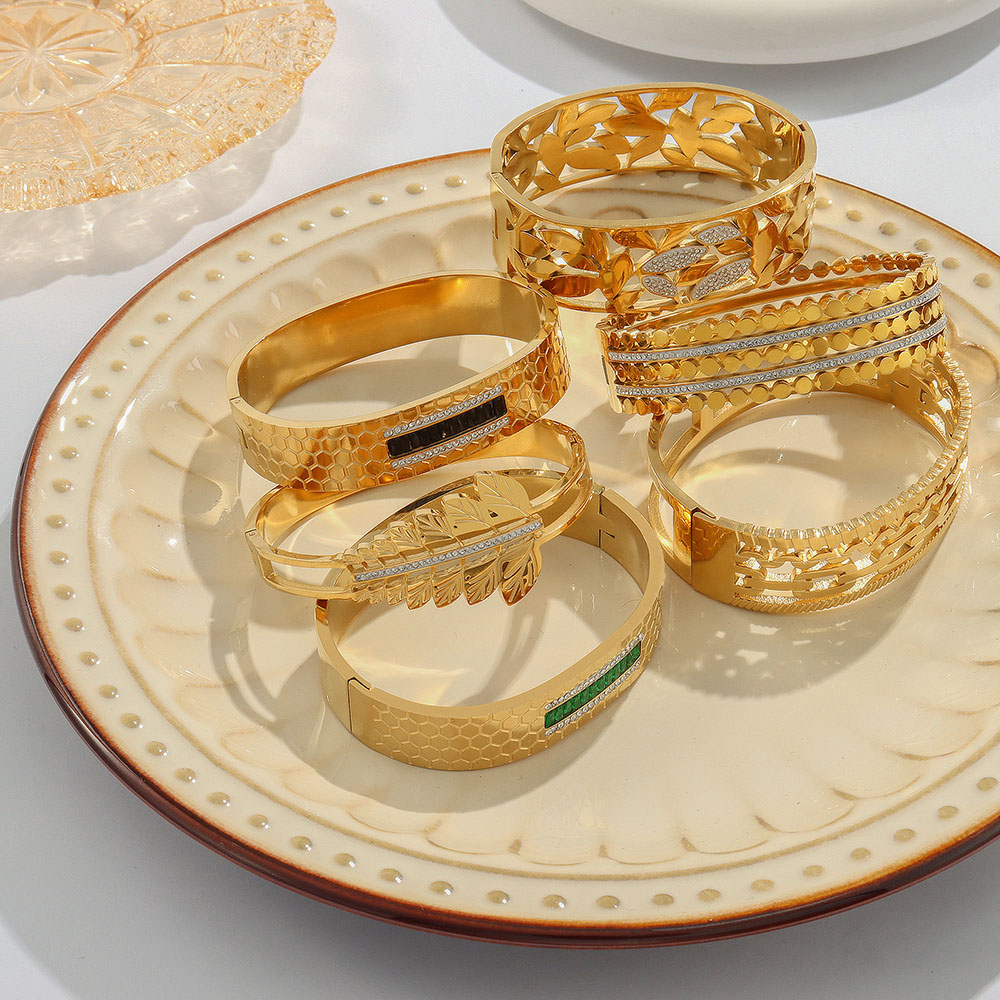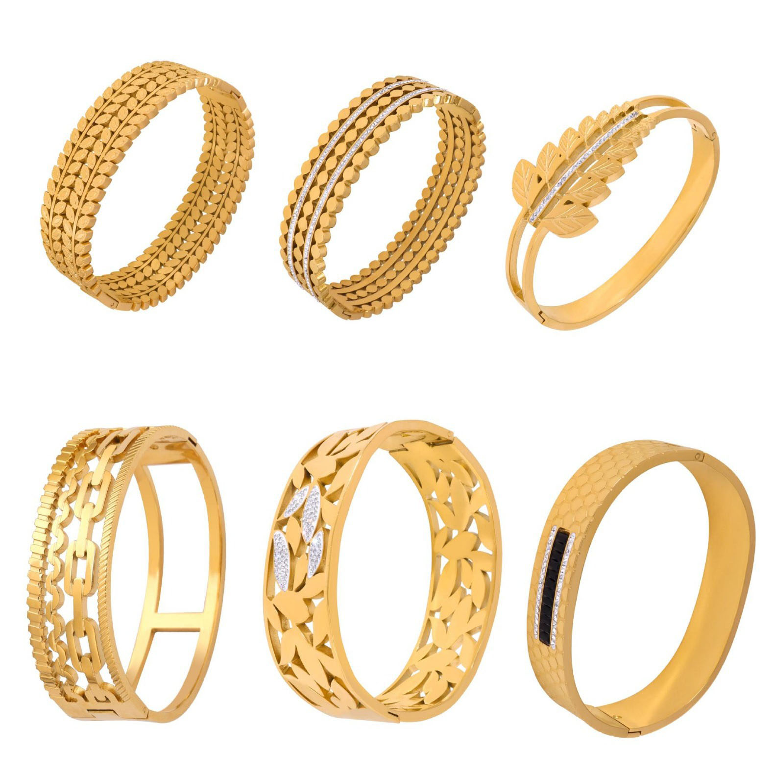 Titanium Steel Bangle, plated, different styles for choice & for woman & with rhinestone & hollow, golden, Sold By PC
