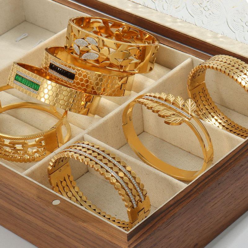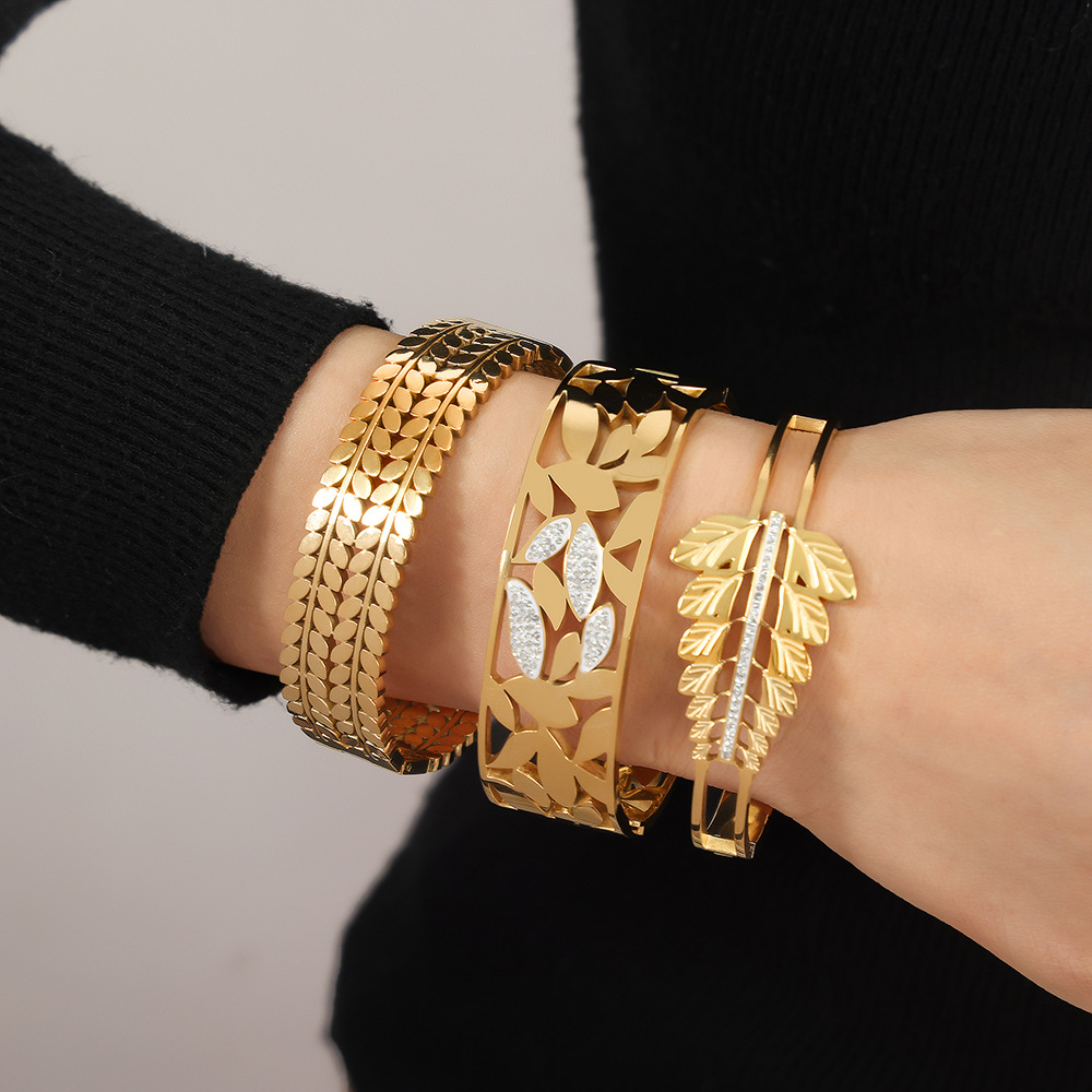 Titanium Steel Bracelet & Bangle, 14K gold plated, fashion jewelry & for woman