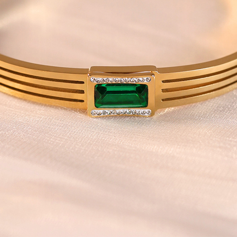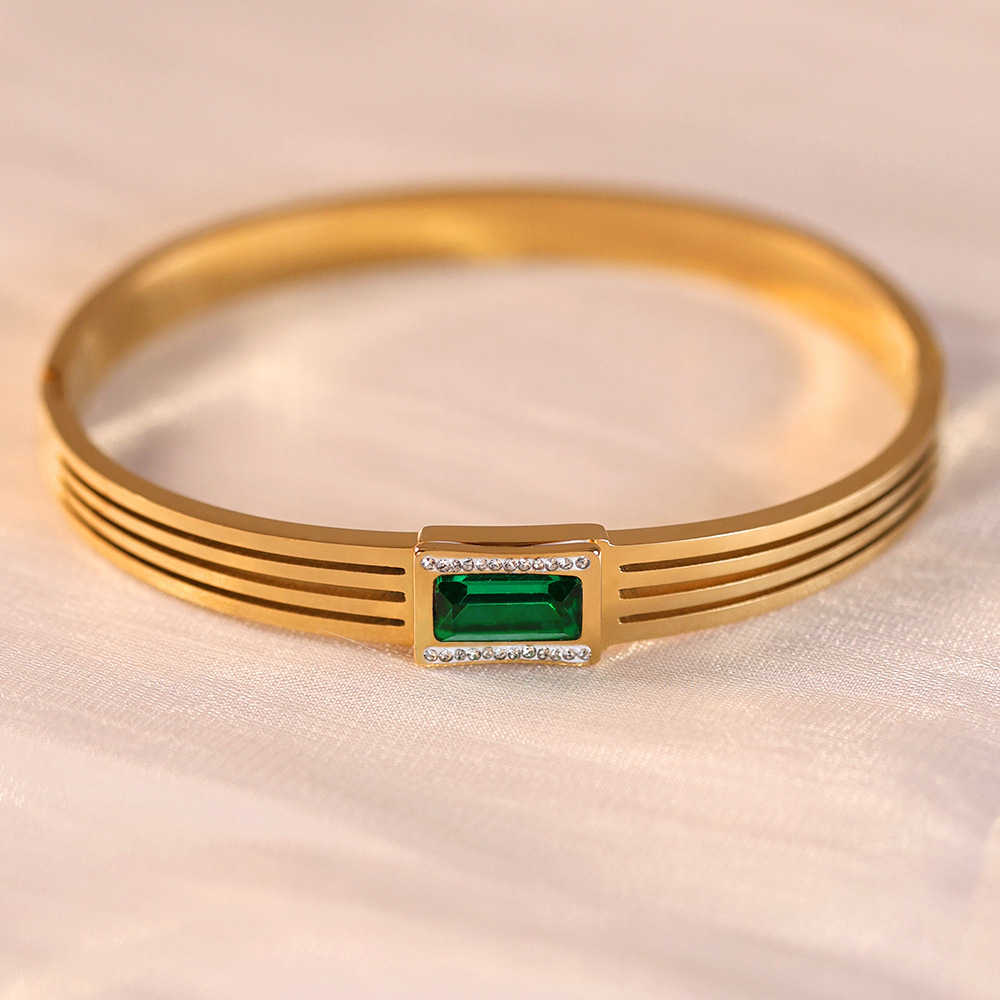 Titanium Steel Bangle, Geometrical Pattern, gold color plated, micro pave cubic zirconia & for woman, Inner Diameter:Approx 60mm, Sold By PC
