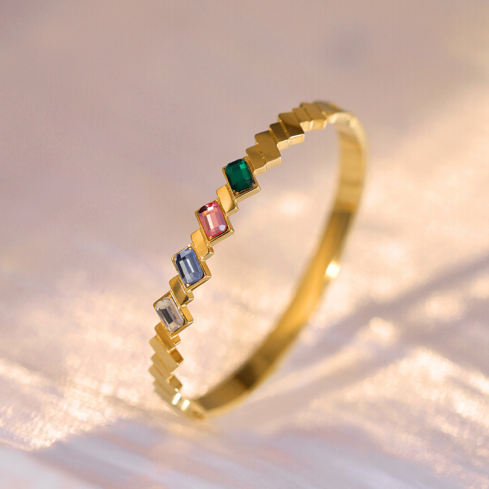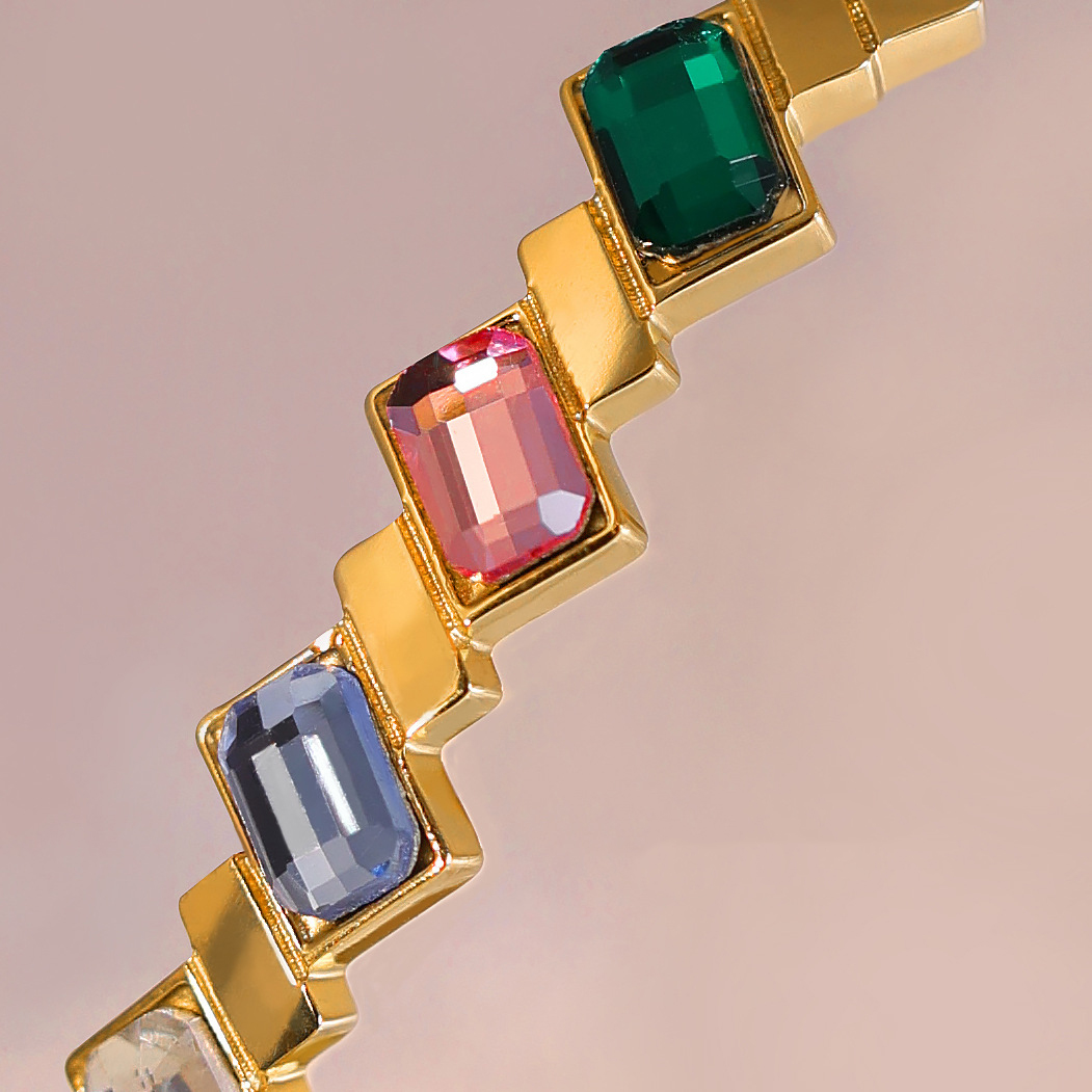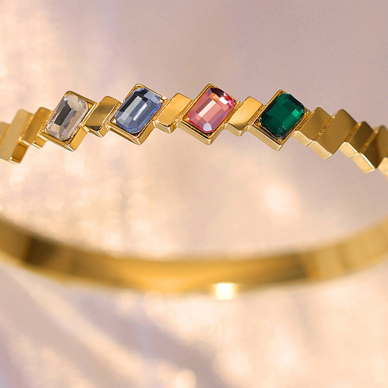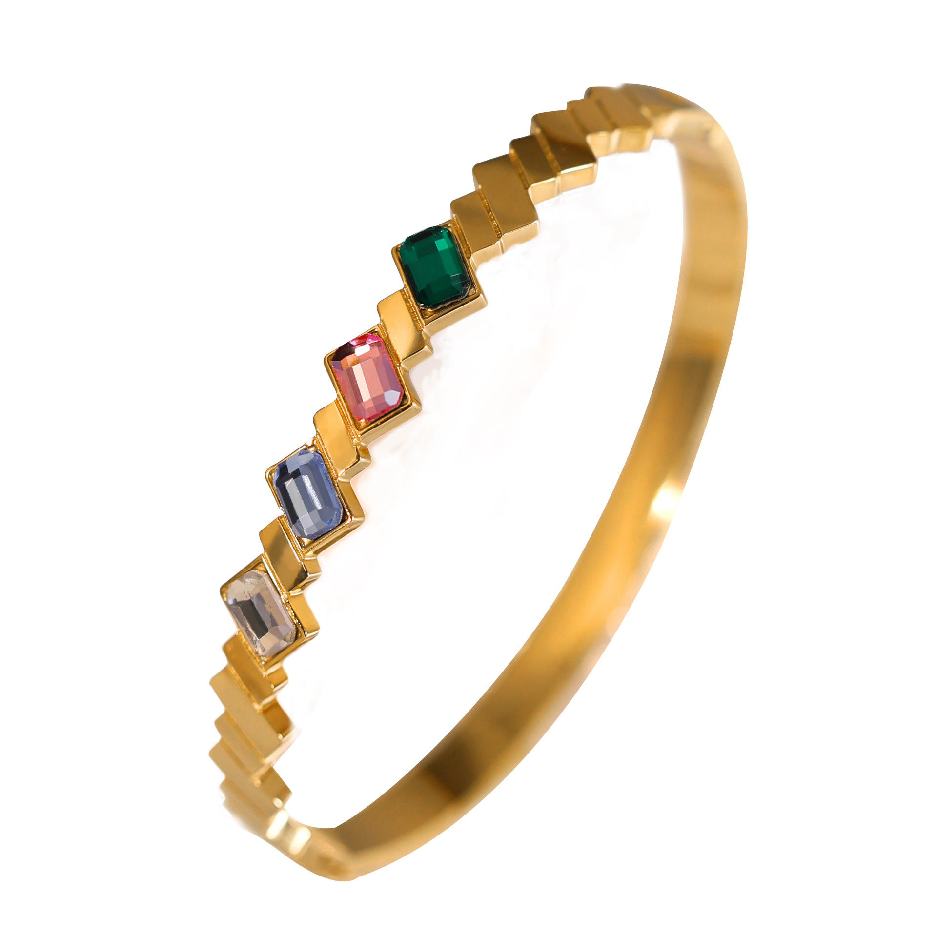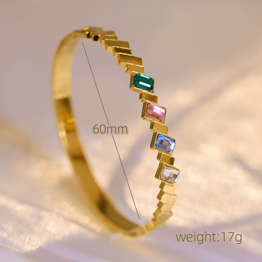 Titanium Steel Bangle, Geometrical Pattern, gold color plated, micro pave cubic zirconia & for woman, Inner Diameter:Approx 60mm, Sold By PC