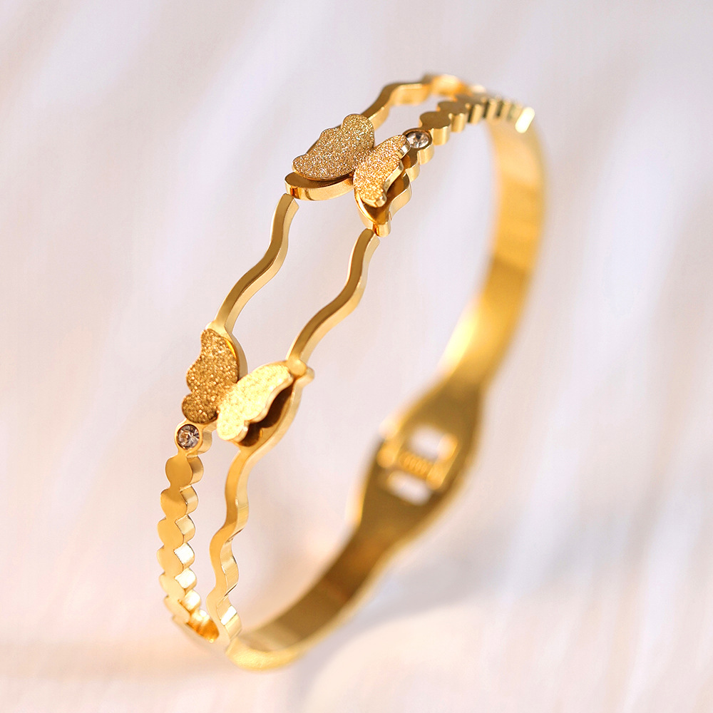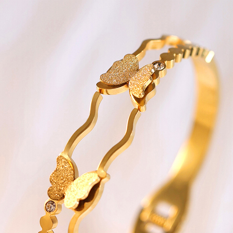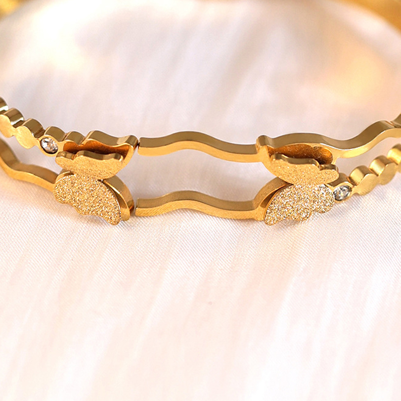 Titanium Steel Bangle, Butterfly, gold color plated, micro pave cubic zirconia & for woman, Inner Diameter:Approx 60mm, Sold By PC