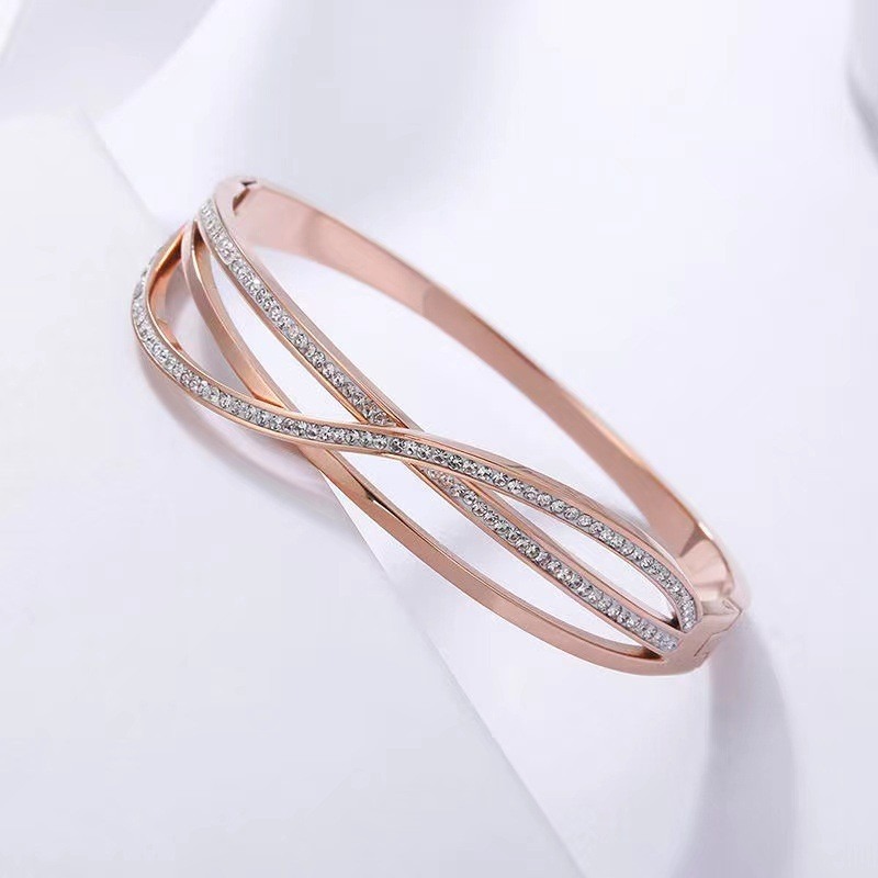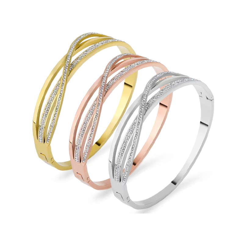Titanium Steel Bangle, plated, multilayer & for woman & with rhinestone & hollow, more colors for choice, Inner Diameter:Approx 60mm, Sold By PC