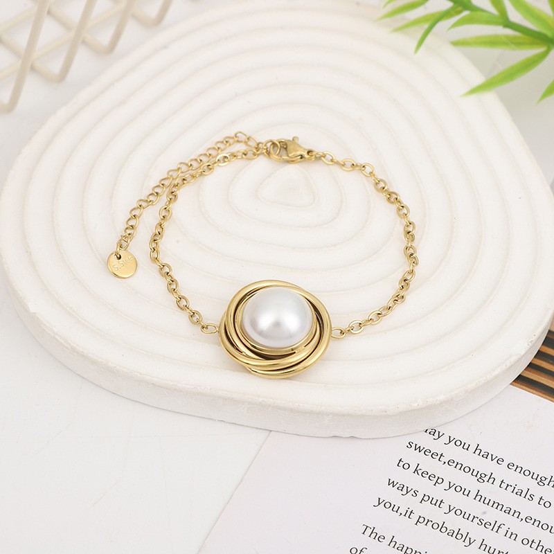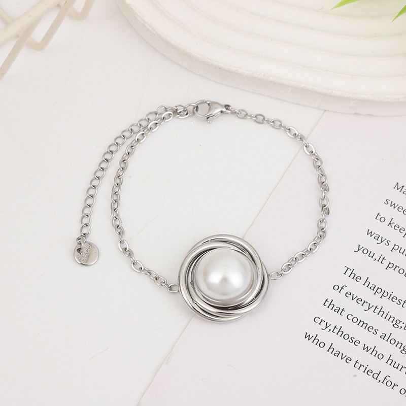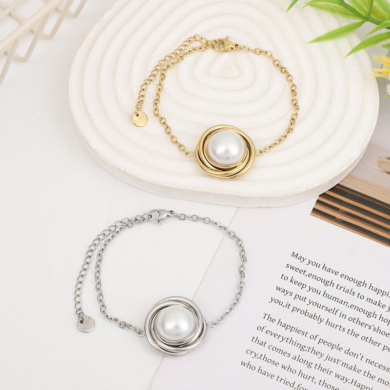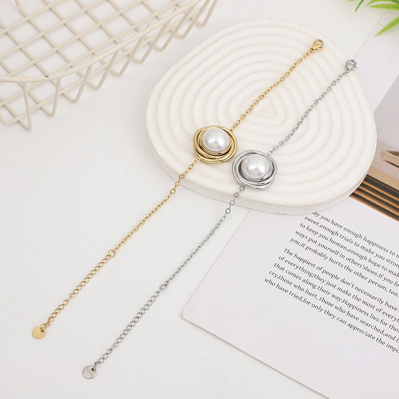 Titanium Steel Bracelet & Bangle, with ABS Plastic Pearl, plated, fashion jewelry & for woman, more colors for choice, Length:Approx 17.8 cm, Sold By PC