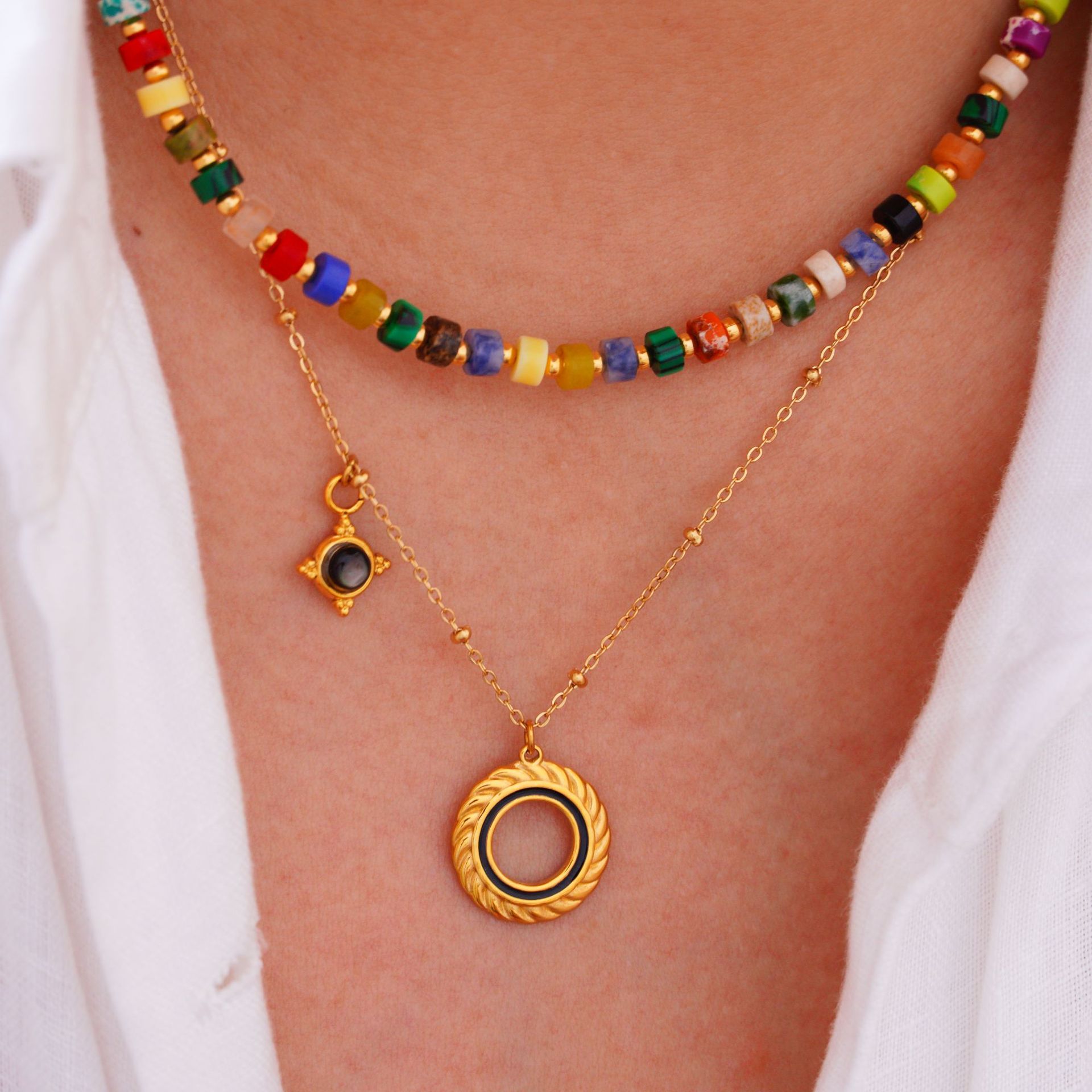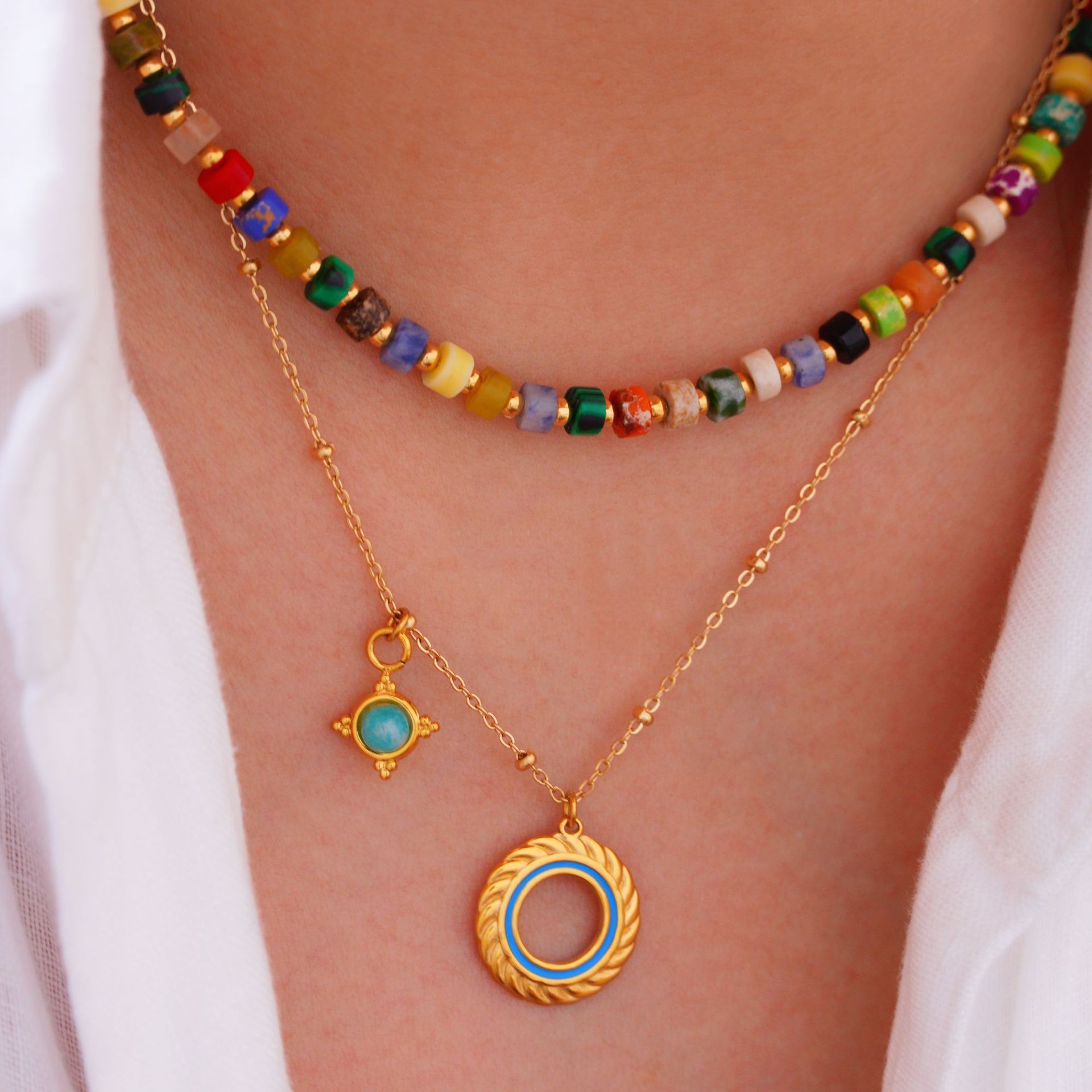 Titanium Steel Bracelet and Necklace, with Natural Stone, gold color plated, different styles for choice & for woman & enamel, Sold By PC