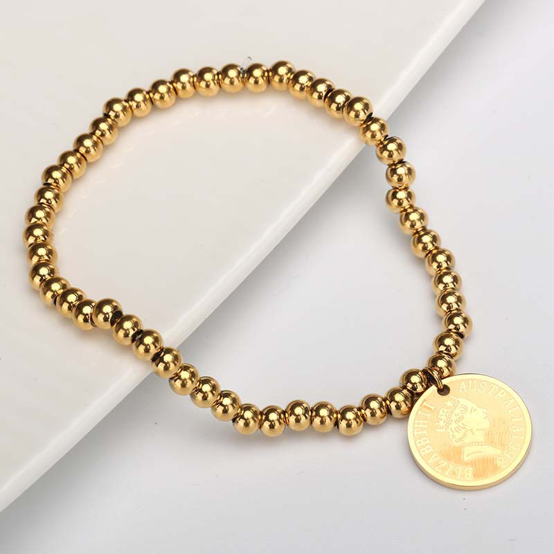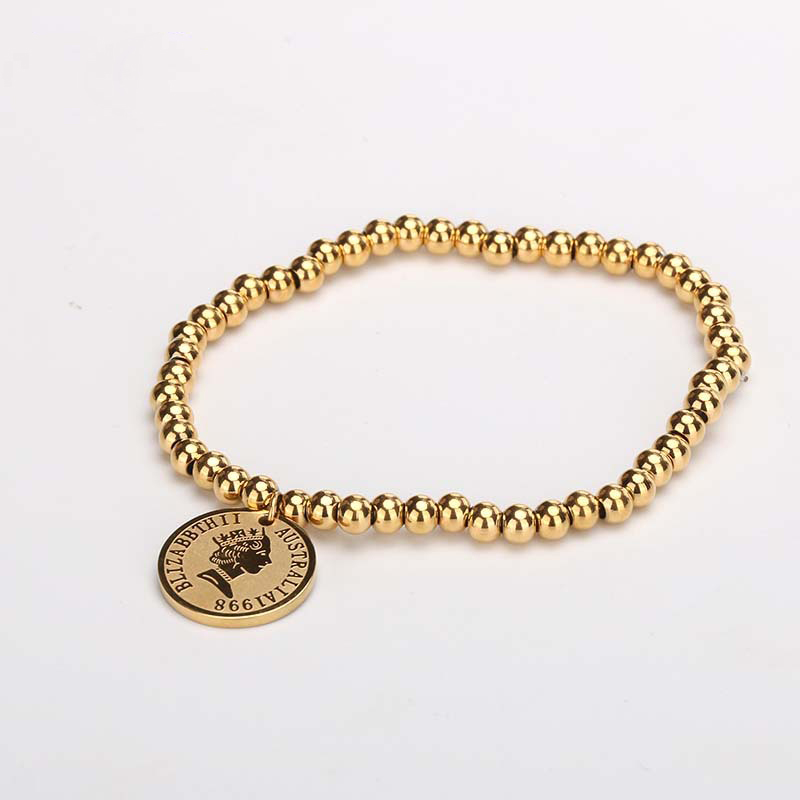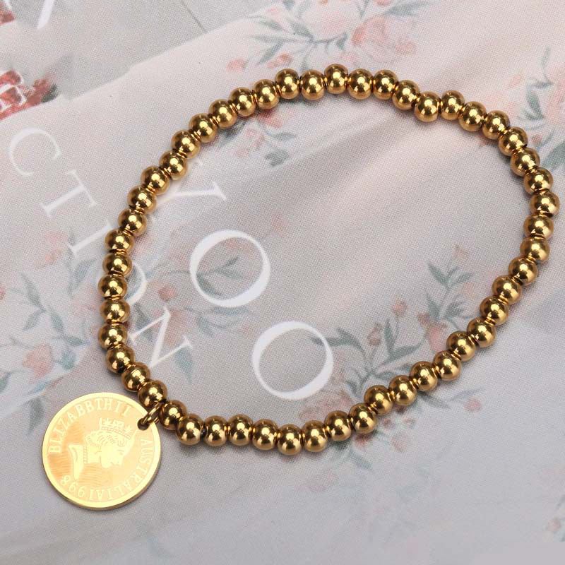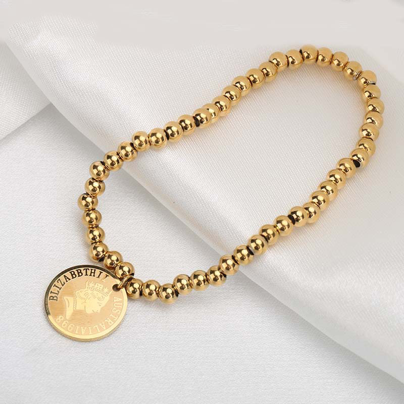 Titanium Steel Bracelet, Flat Round, gold color plated, ball chain & for woman, Length:Approx 6-8 Inch, Sold By PC
