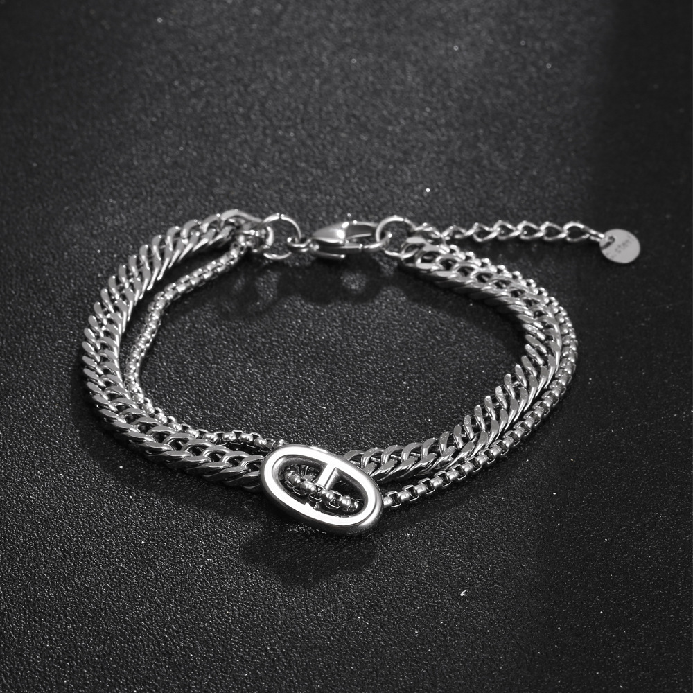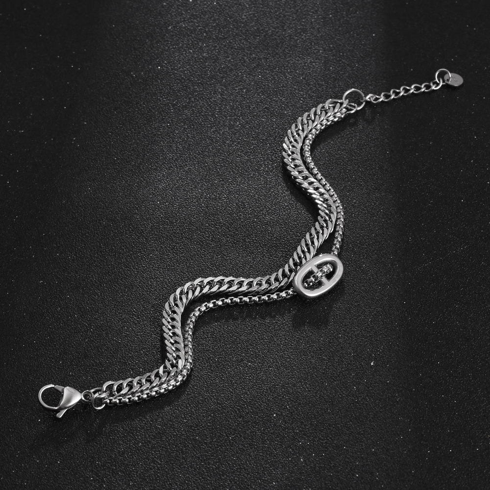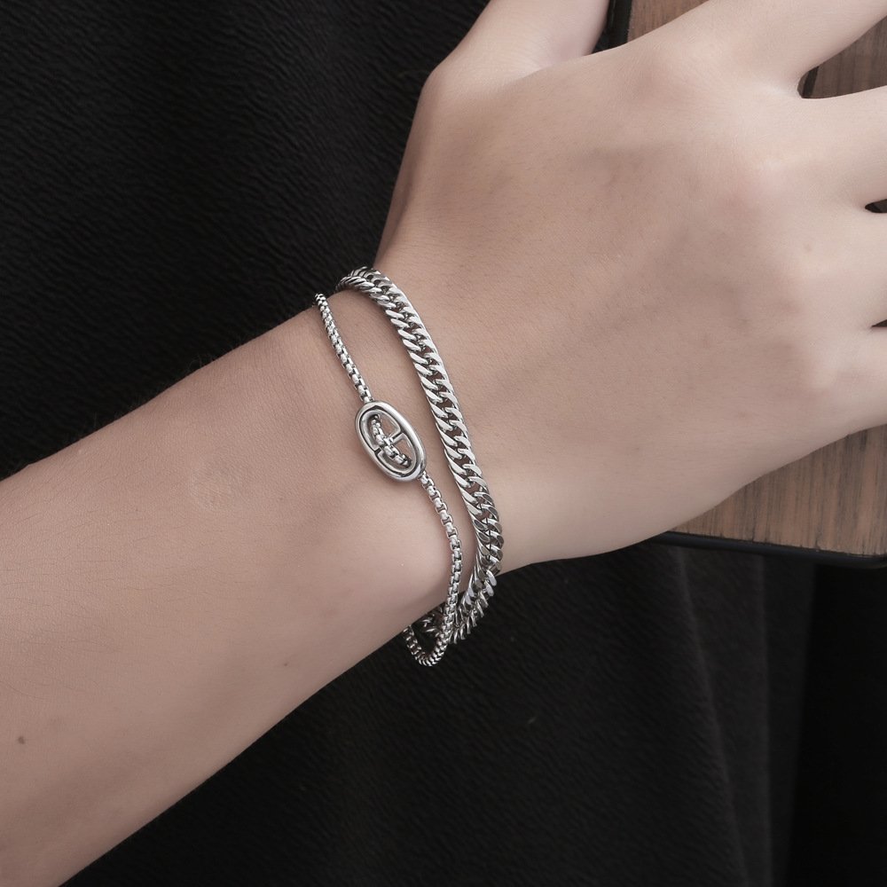 Titanium Steel Bracelet, polished, Double Layer & fashion jewelry & Unisex & different size for choice, original color, Sold By PC