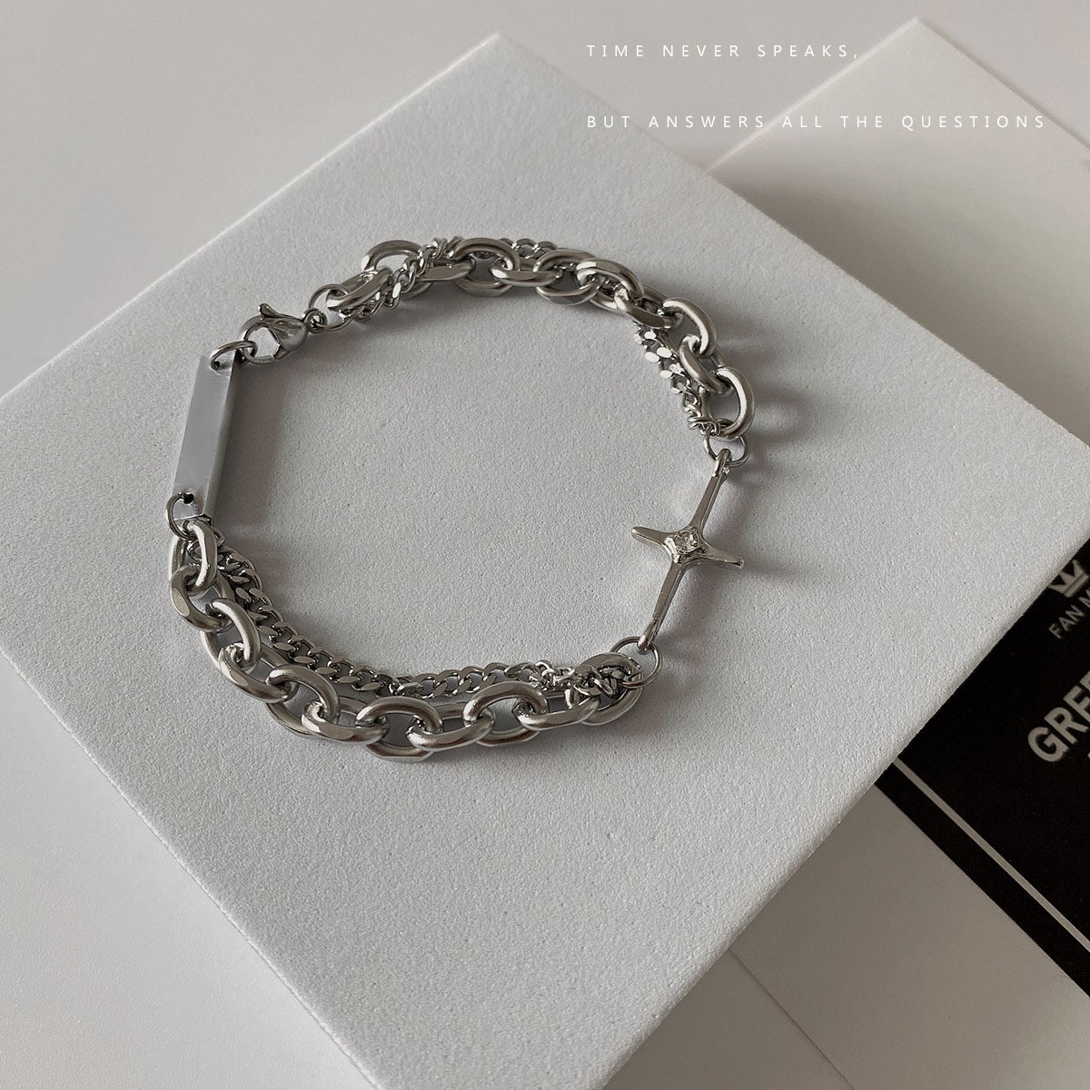 Titanium Steel Bracelet, byzantine chain, original color, 7mm Approx 8.5 Inch