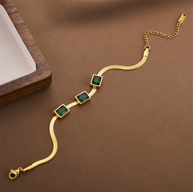 Titanium Steel Bracelet, with Cubic Zirconia, plated, fashion jewelry & for woman, golden, Length:Approx 17.8 cm, Sold By PC
