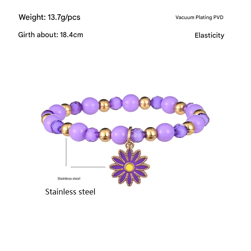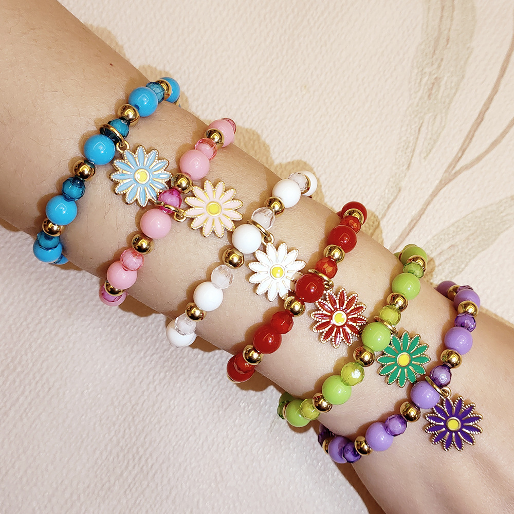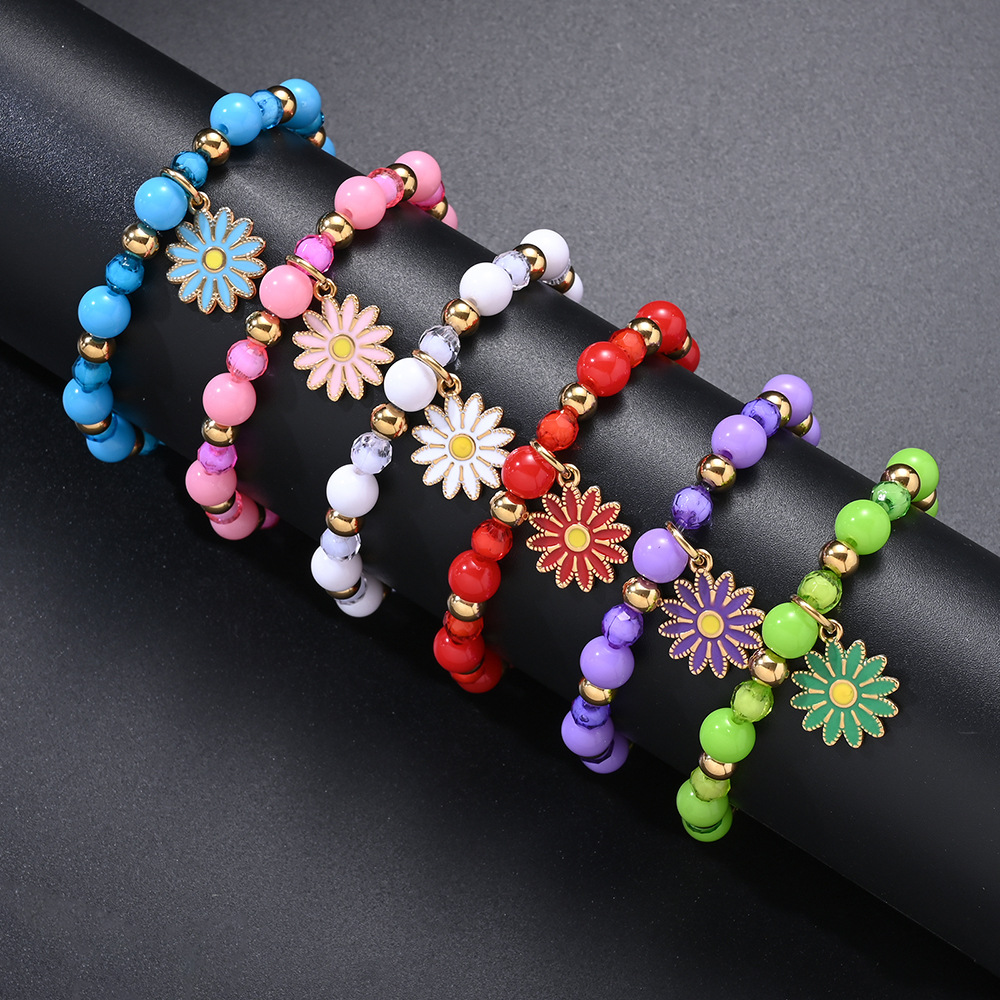 Titanium Steel Bracelet, with Glass Beads & 304 Stainless Steel, Daisy, gold color plated, fashion jewelry & enamel, more colors for choice, Sold By PC