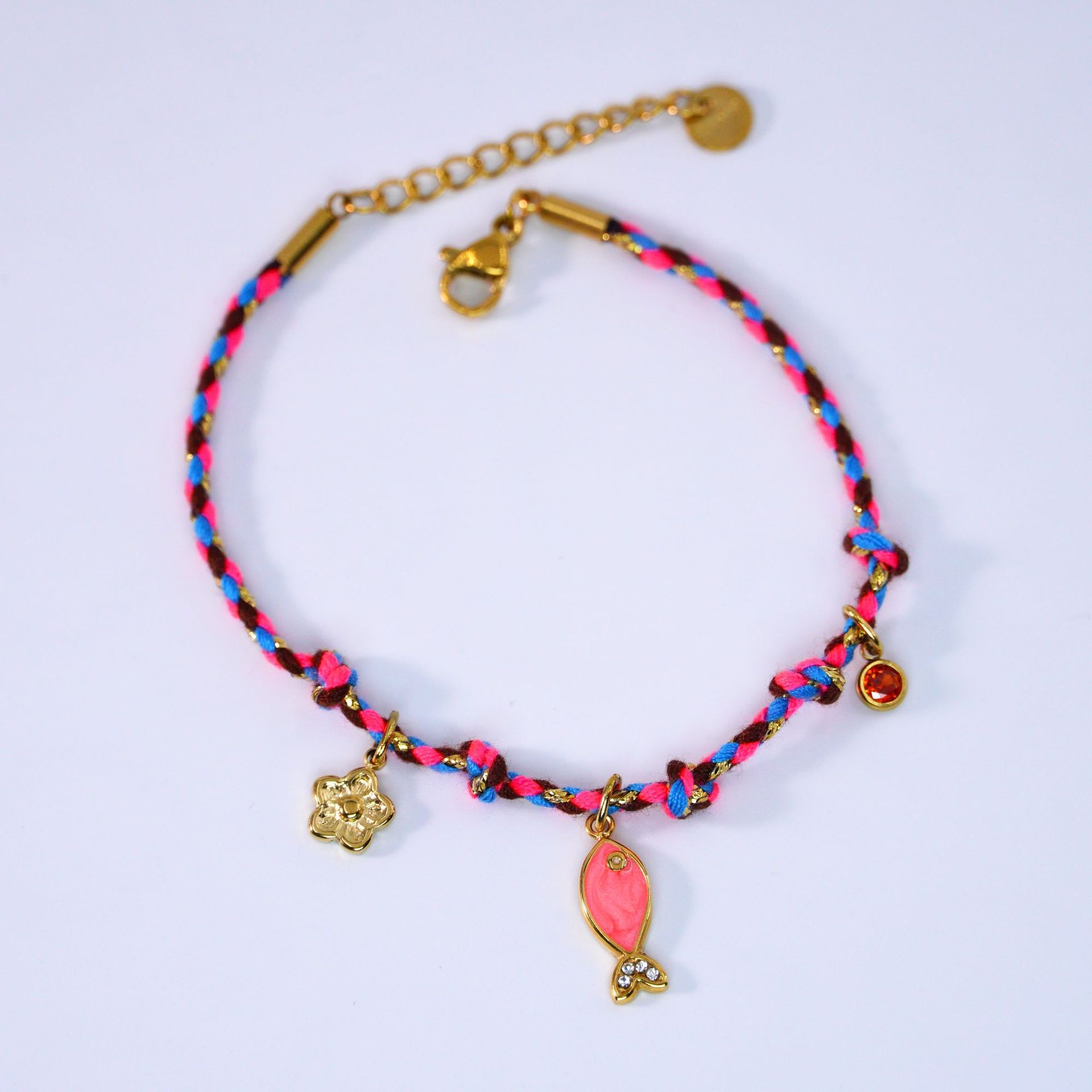 Titanium Steel Bracelet, with Natural Stone & Polyester Cord, gold color plated, different styles for choice & for woman & enamel & with rhinestone, Length:Approx 6-8 Inch, Sold By PC