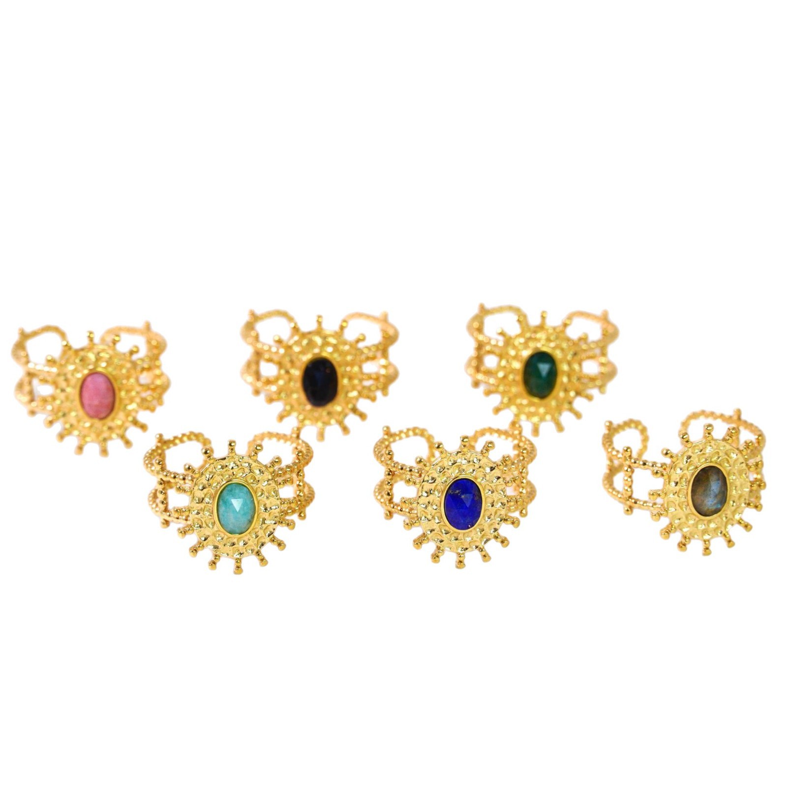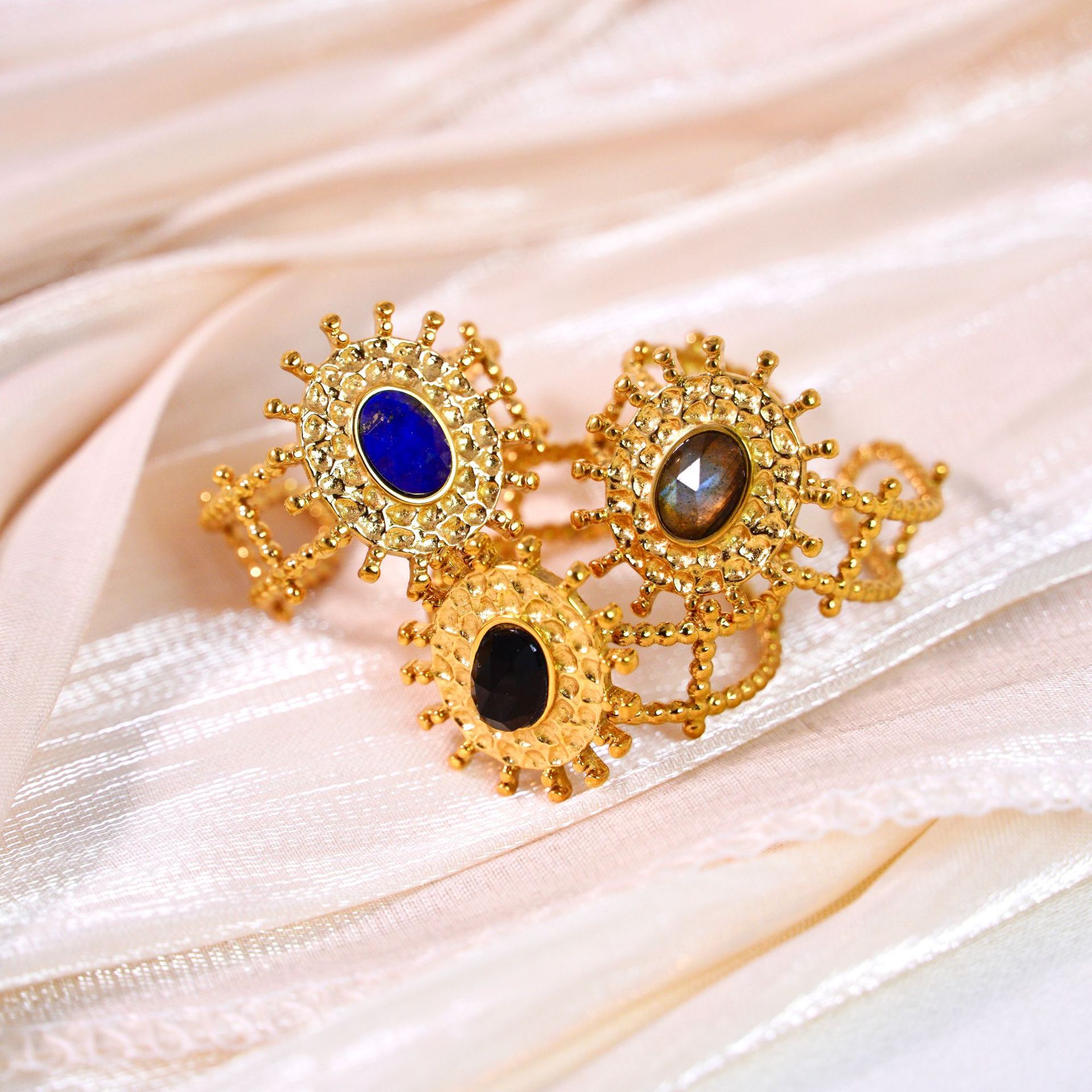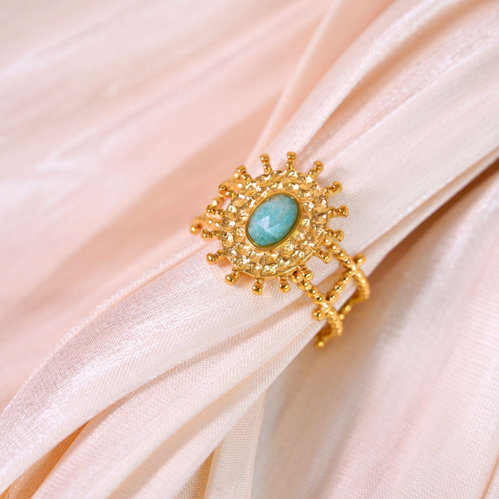 Titanium Steel Cuff Finger Ring, with Gemstone, Flower, gold color plated, different materials for choice & Unisex, US Ring Size:6-9, Sold By PC