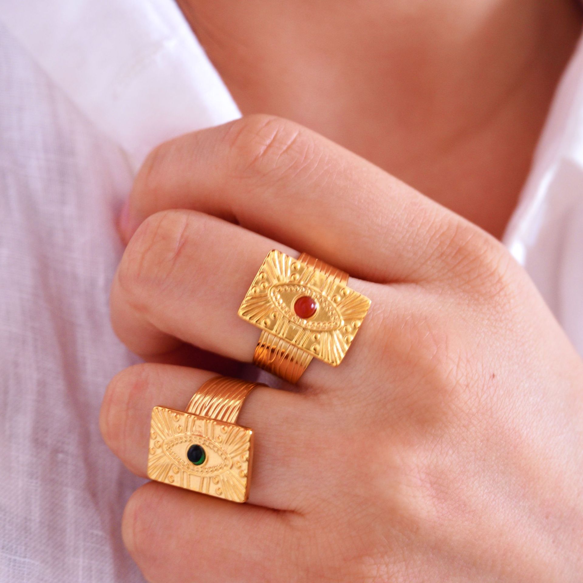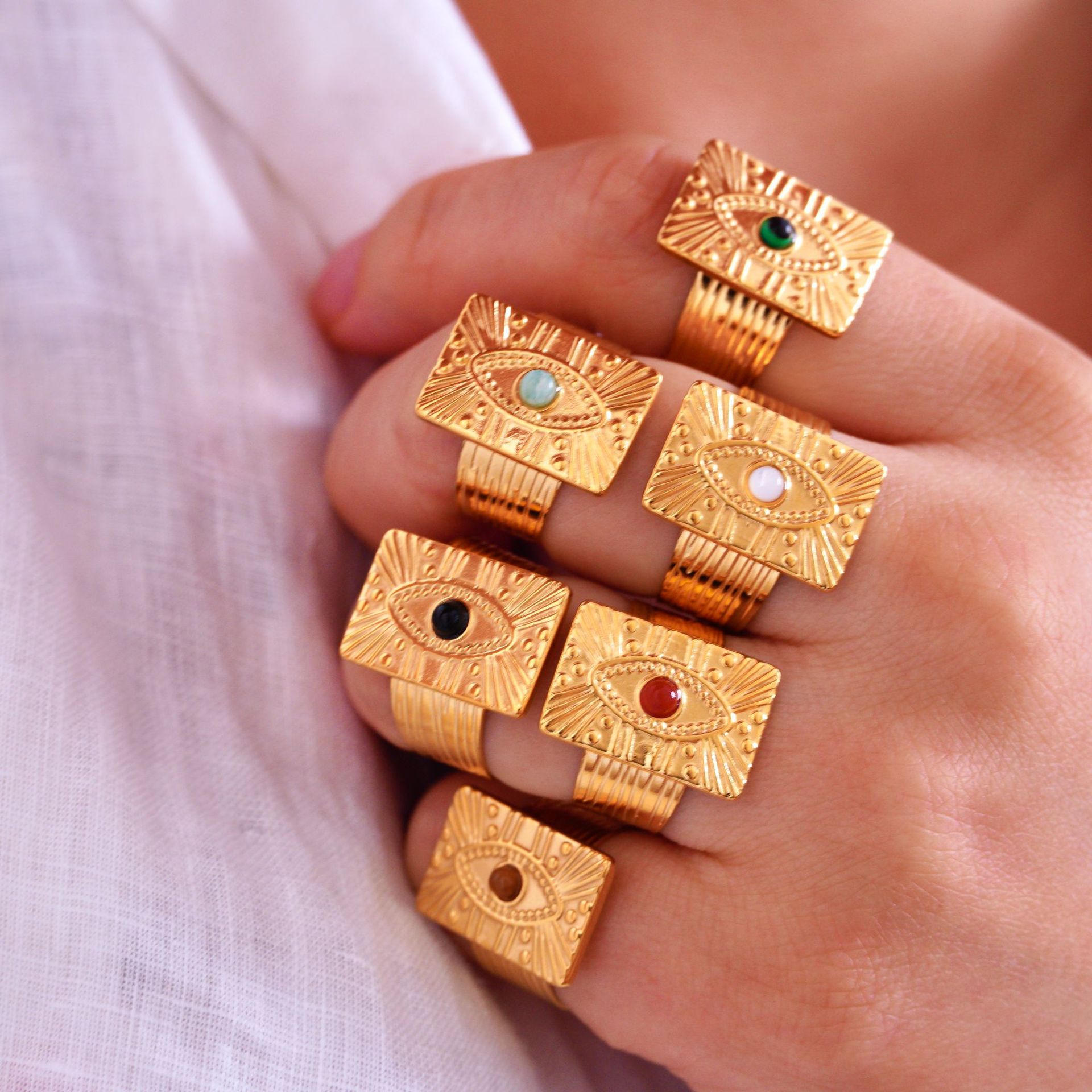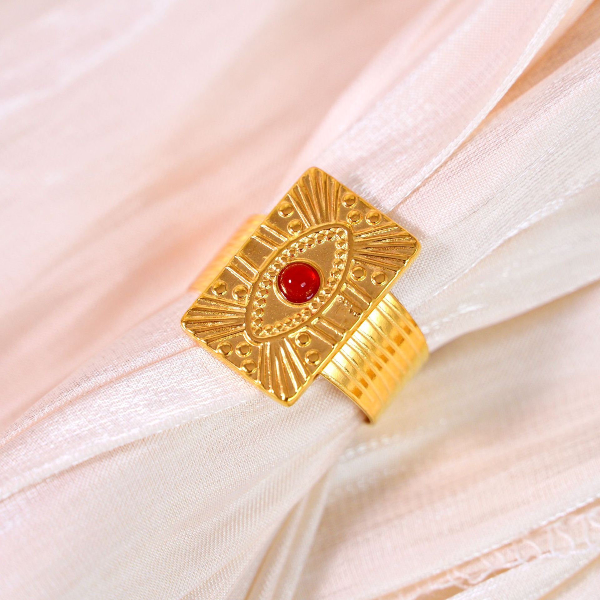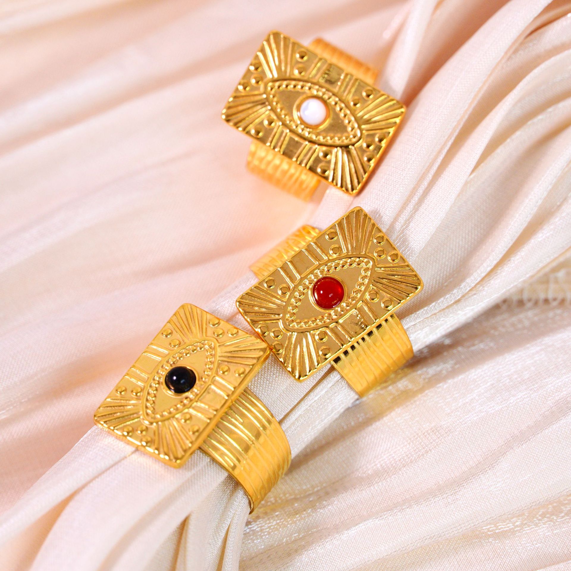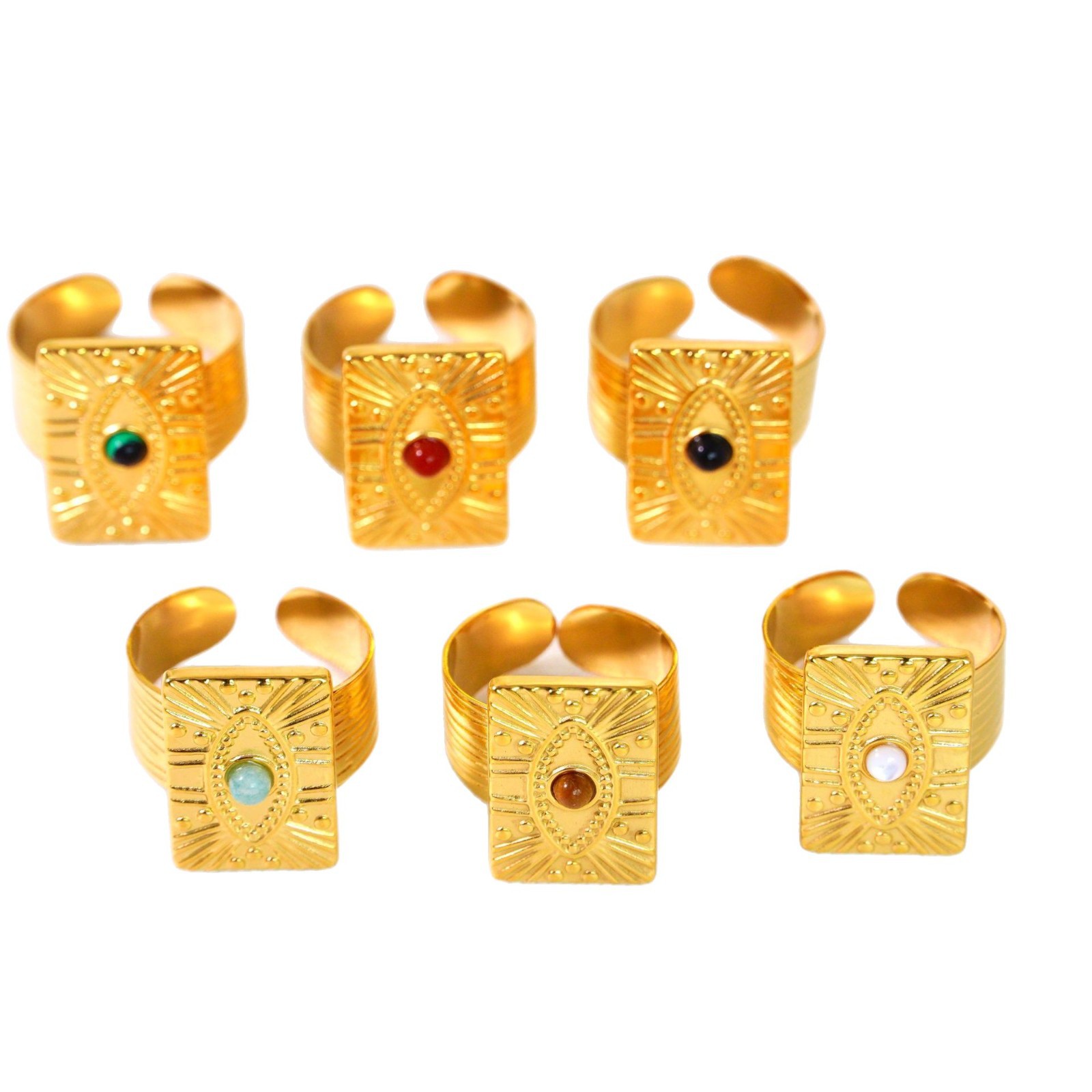 Titanium Steel Cuff Finger Ring, with Gemstone, Geometrical Pattern, gold color plated, different materials for choice & Unisex, US Ring Size:6-9, Sold By PC