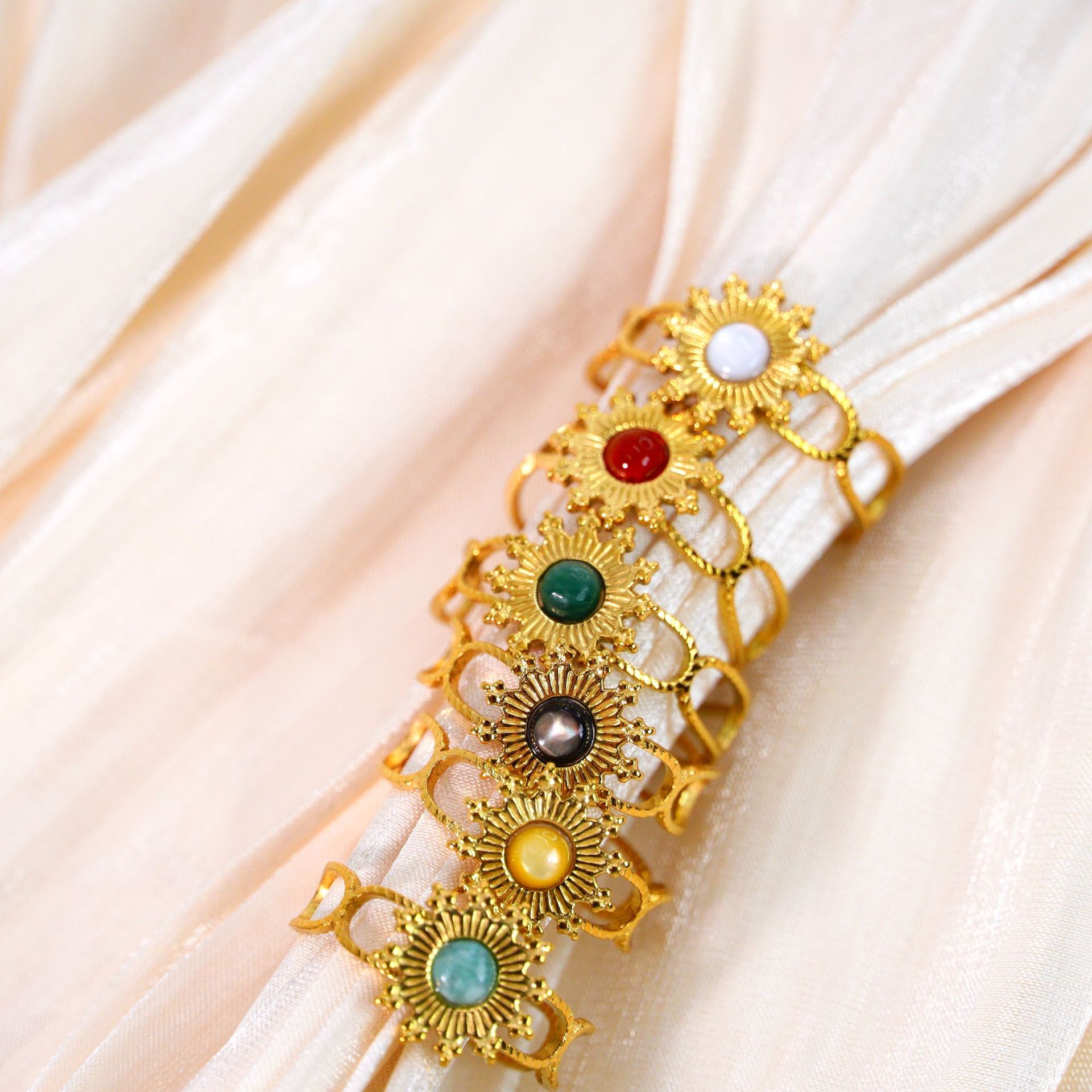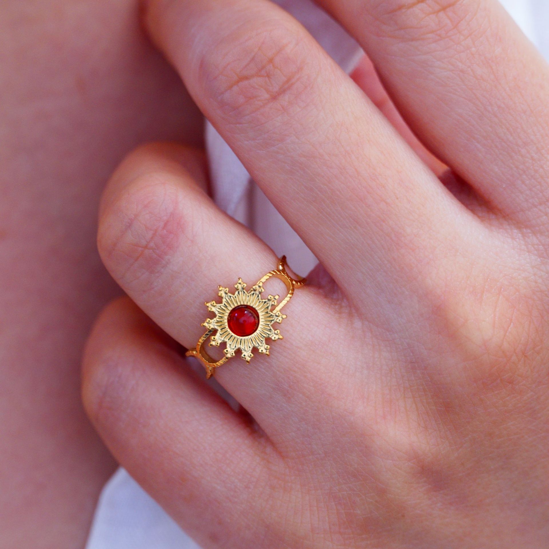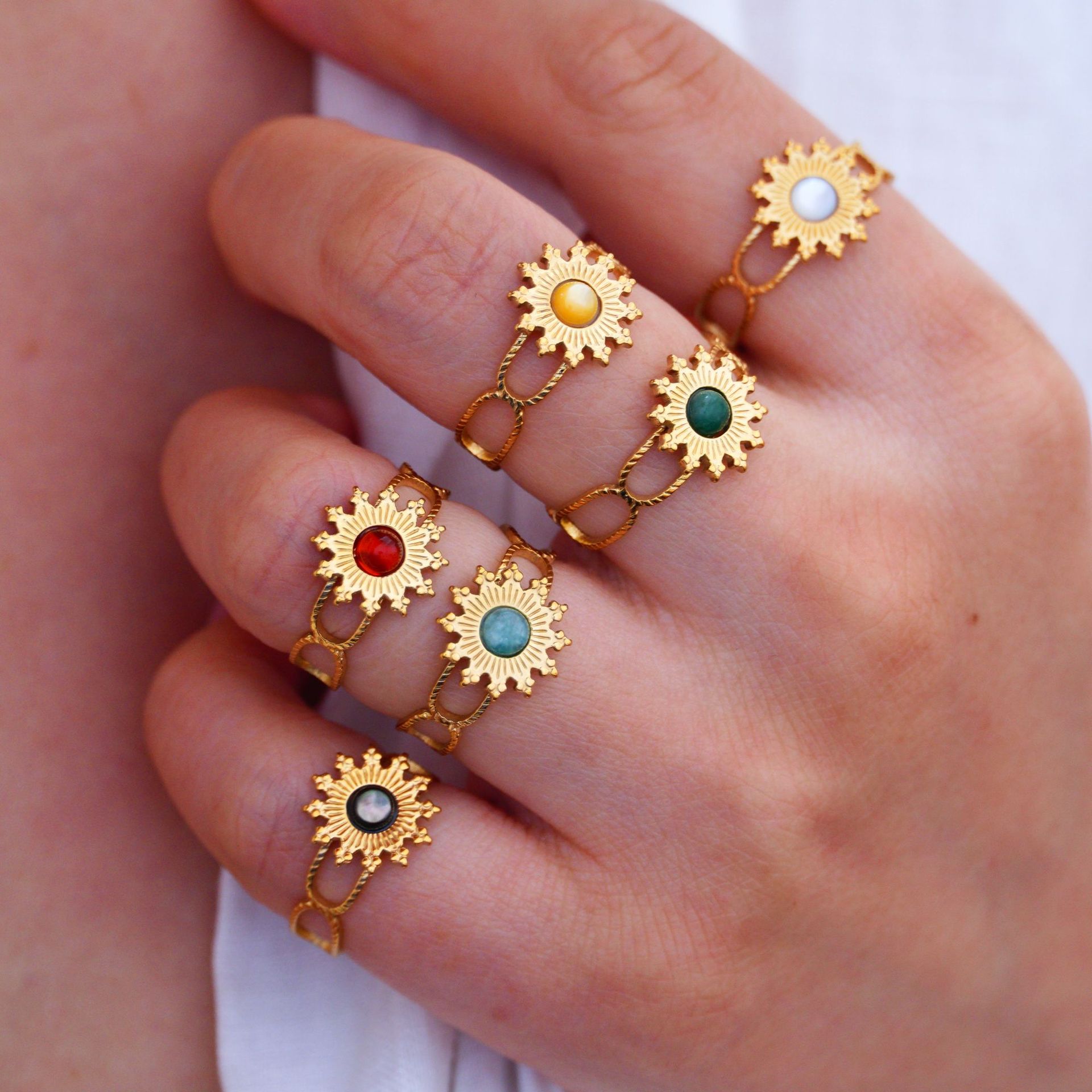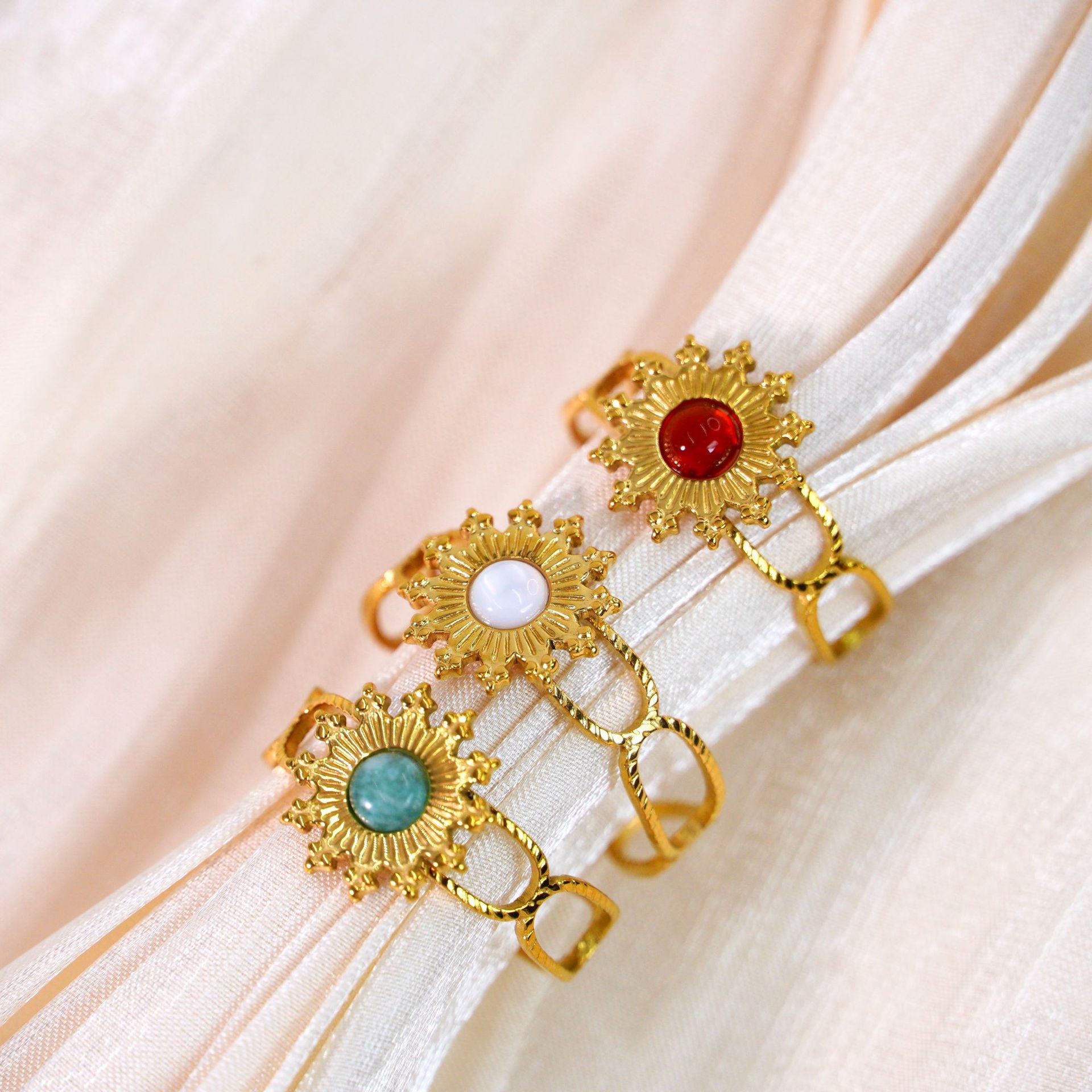 Titanium Steel Cuff Finger Ring, with Gemstone, Flower, gold color plated, different materials for choice & Unisex, US Ring Size:6-9, Sold By PC