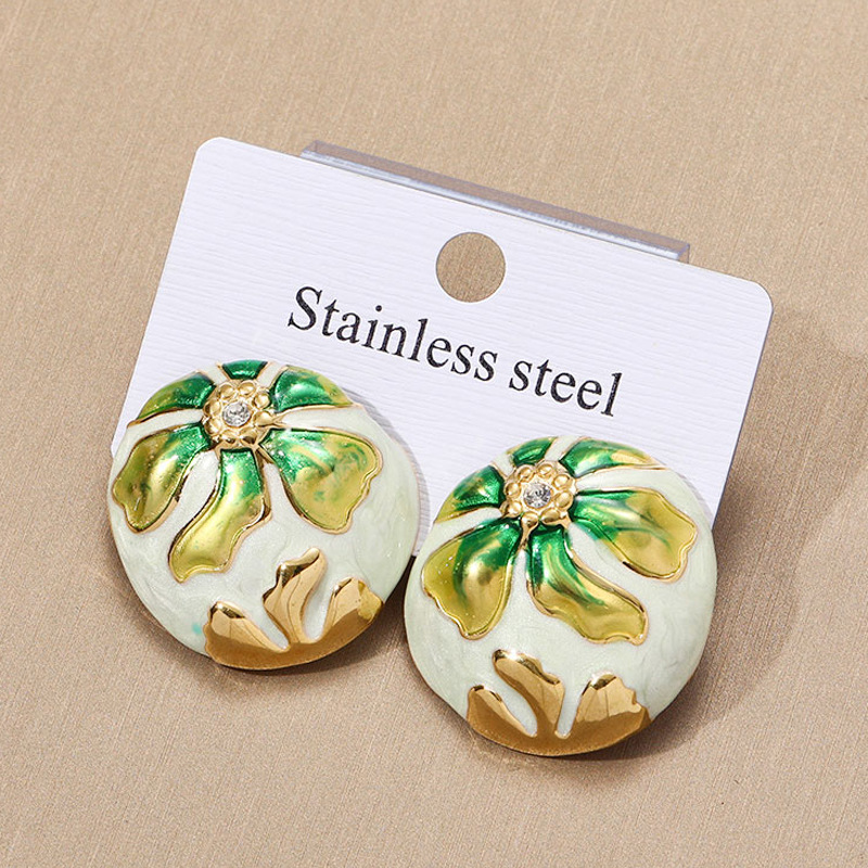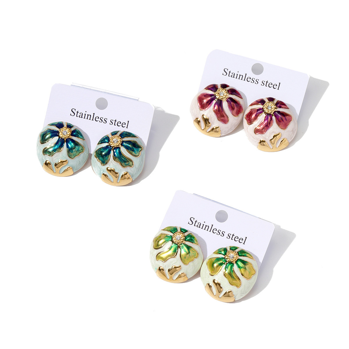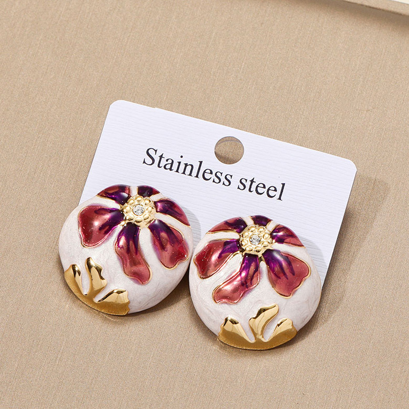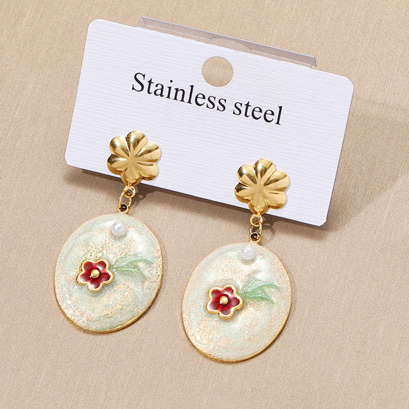 Titanium Steel Earrings, with Plastic Pearl, Flower, plated, fashion jewelry & enamel, more colors for choice, Sold By Pair
