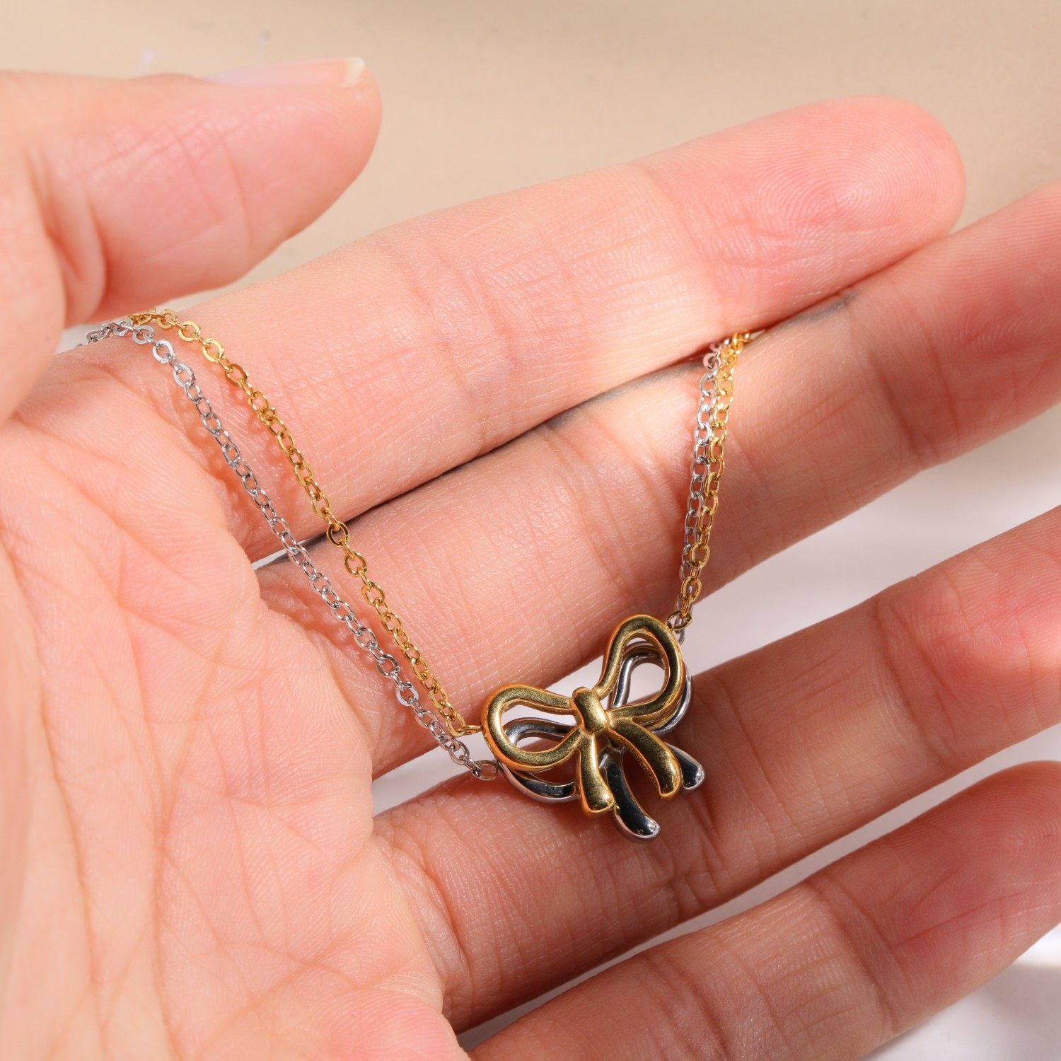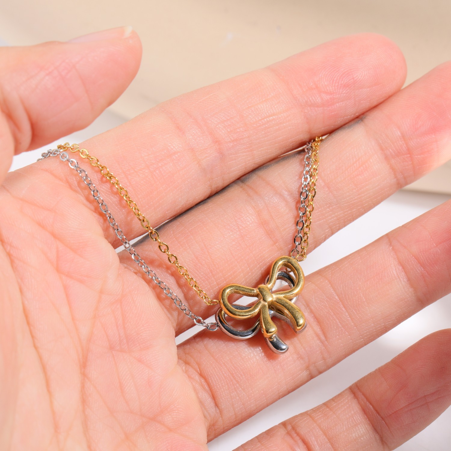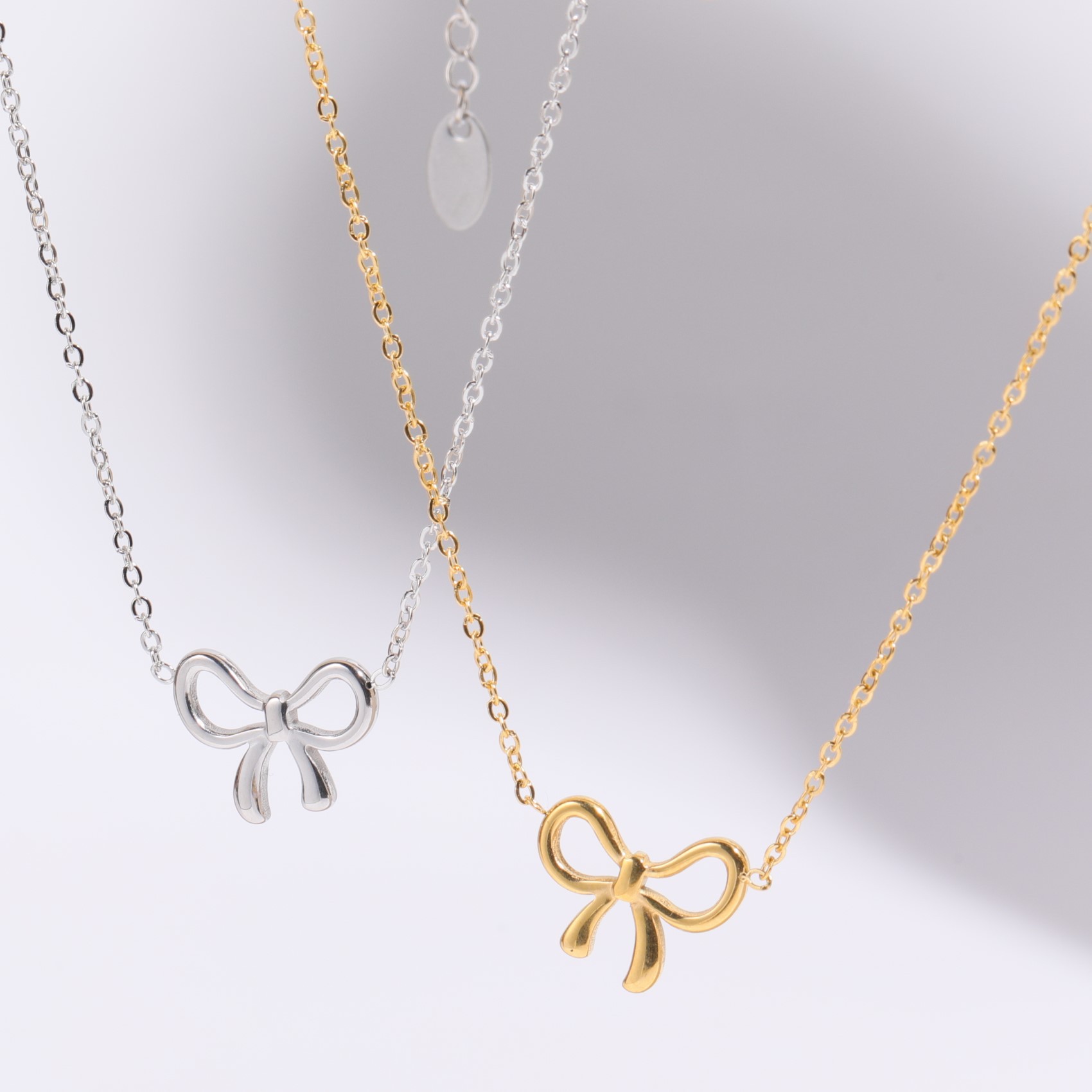 Titanium Steel Jewelry Necklace, Bowknot, Vacuum Ion Plating, for woman, more colors for choice, Length:41-50 cm, Sold By PC