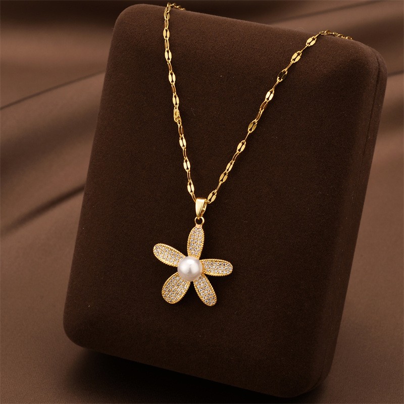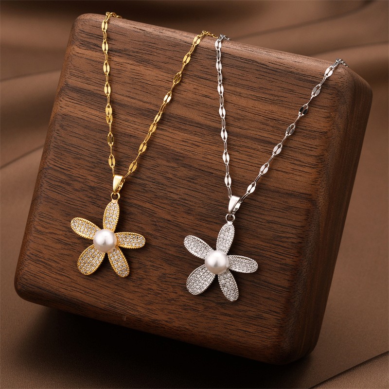 Titanium Steel Jewelry Necklace, with ABS Plastic Pearl & Cubic Zirconia, plated, fashion jewelry & for woman, more colors for choice, Length:Approx 41 , Sold By PC