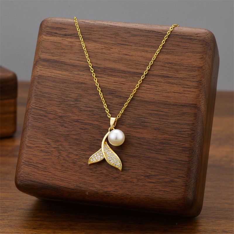 Titanium Steel Jewelry Necklace, with ABS Plastic Pearl & Cubic Zirconia, plated, fashion jewelry & for woman, more colors for choice, Sold By PC