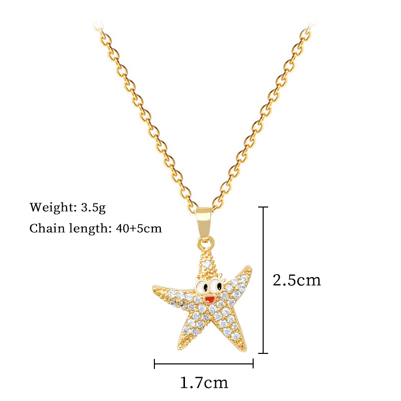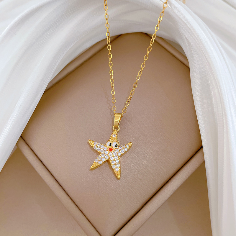Titanium Steel Jewelry Necklace, with Brass, Starfish, micro pave cubic zirconia & for woman & enamel, golden, Sold By PC