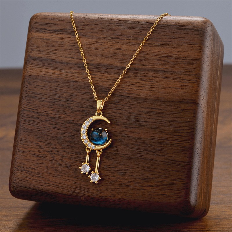 Titanium Steel Jewelry Necklace, with Cubic Zirconia & Resin, plated, fashion jewelry & for woman, more colors for choice, Sold By PC